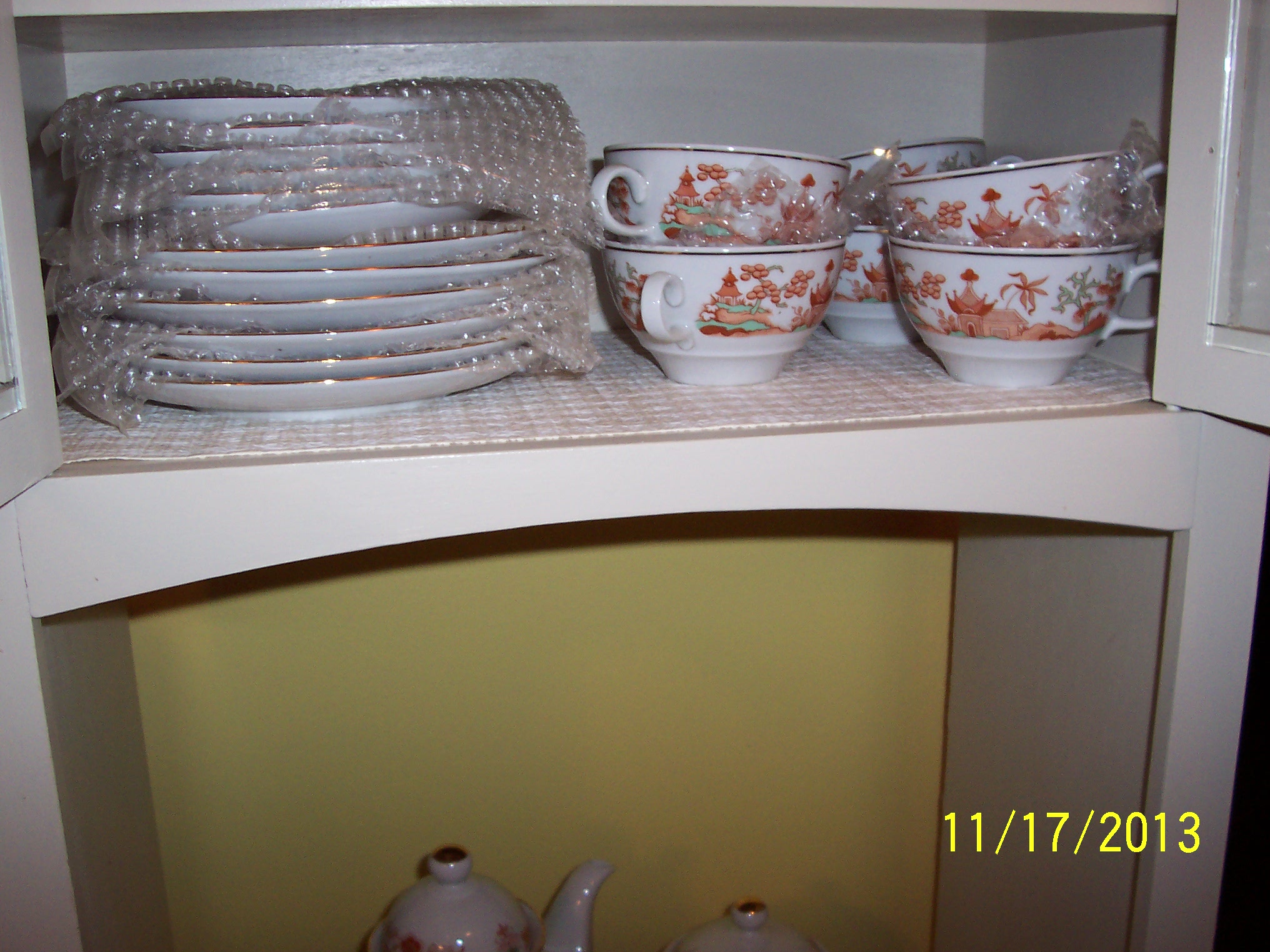 JLMENAU Graf von Henneberg-Turzellan, Made in German Democratic Republic, Tea Set. Tea pot, sugar & creamer, six plates, six tea cups & saucers, with beautiful oriental motif. Never been used. Excellent condition. Please appraise -- thank you.