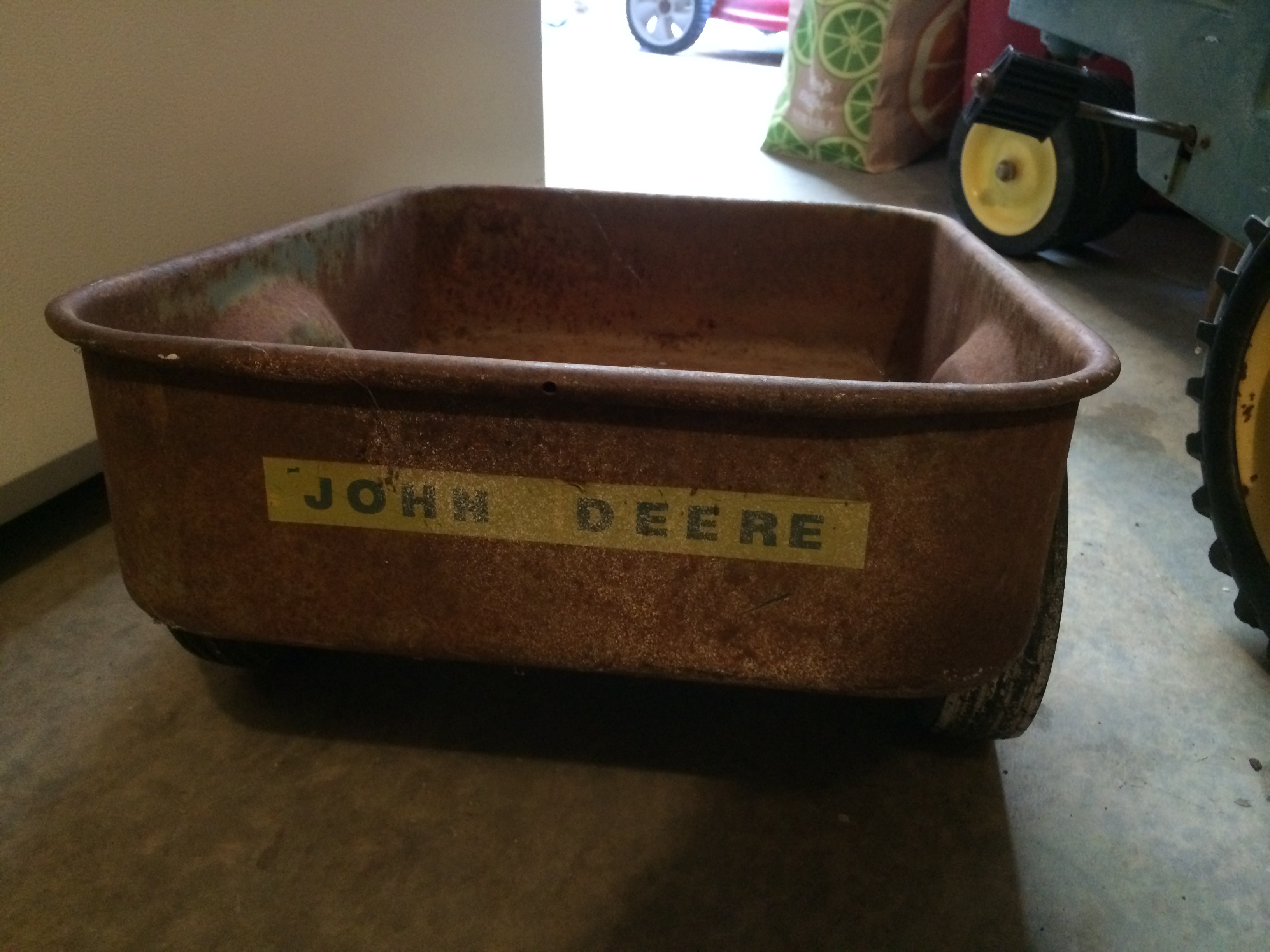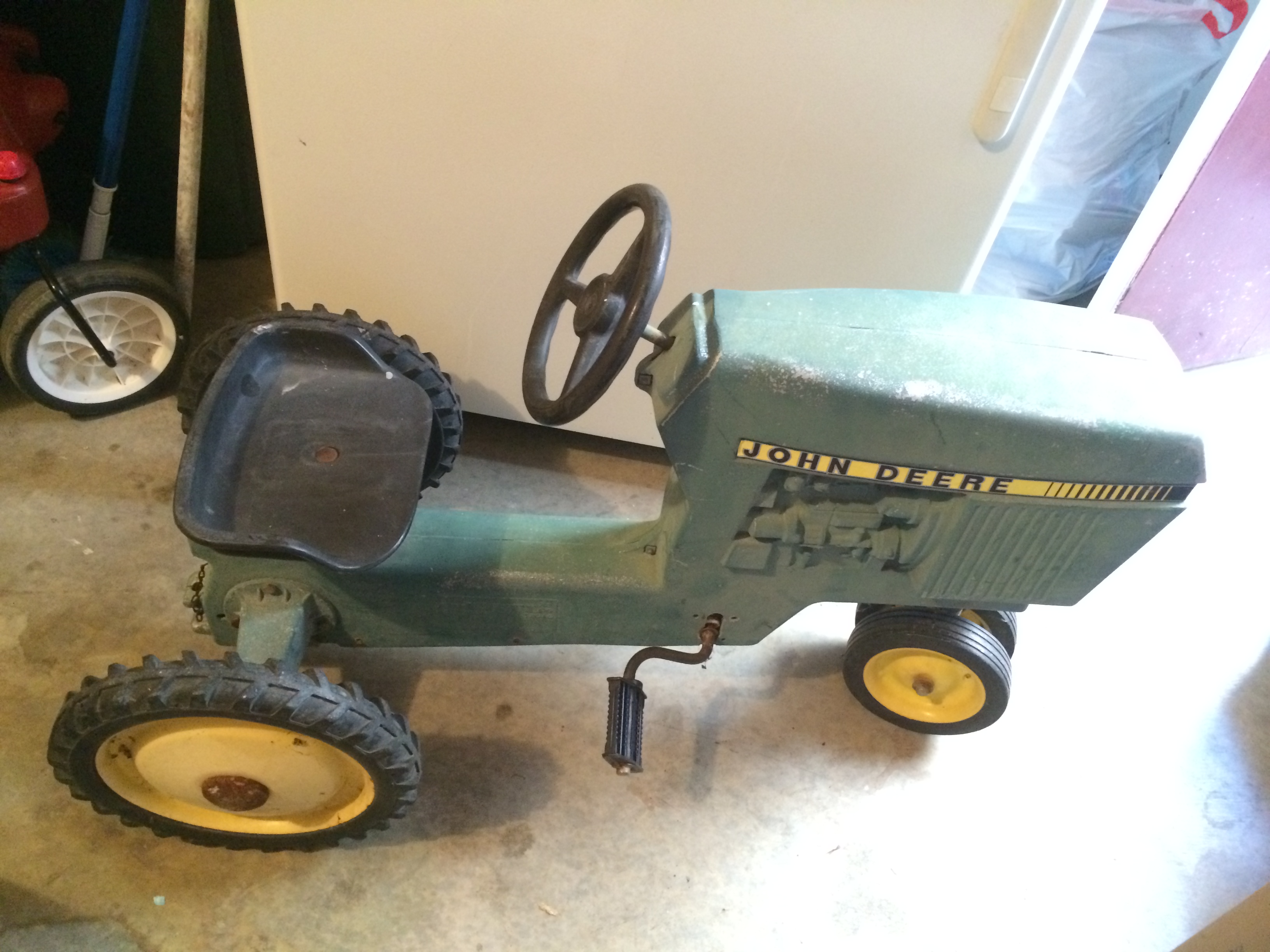 John Deere pedal tractor, I am unsure of the age, in working and original condition