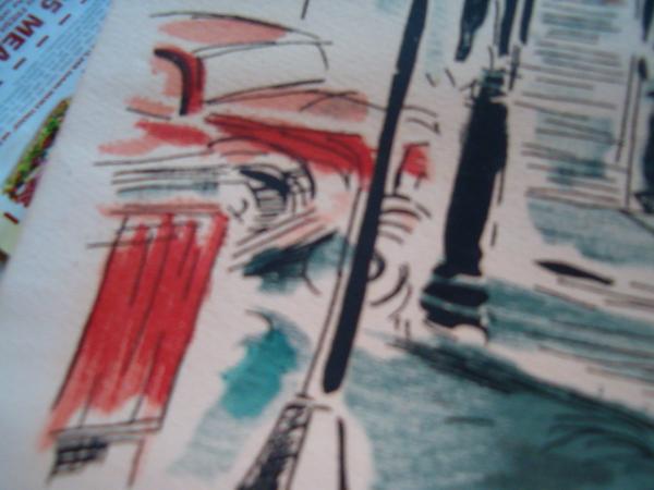 This is an original watercolor,I've had this watercolor about 10 years,I'm not really sure of date,my guess 1940's-50's,there's some foxing at edge,there's no date or title,I had to take picture out of frame,the back has the person's name who received this watercolor as a gift.Over the years,watercolor has some bleed thur on paper,not a lot,edges has a few tiny tiny chip,barely noticable.