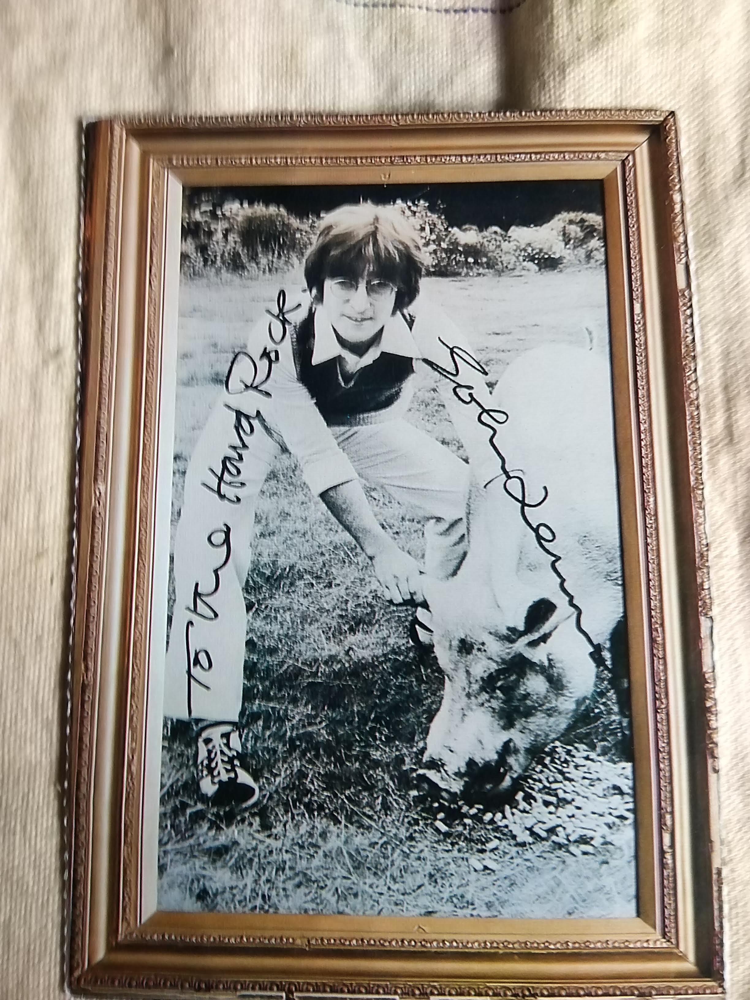Hard rock cafe post card with his autograph John Lennon.