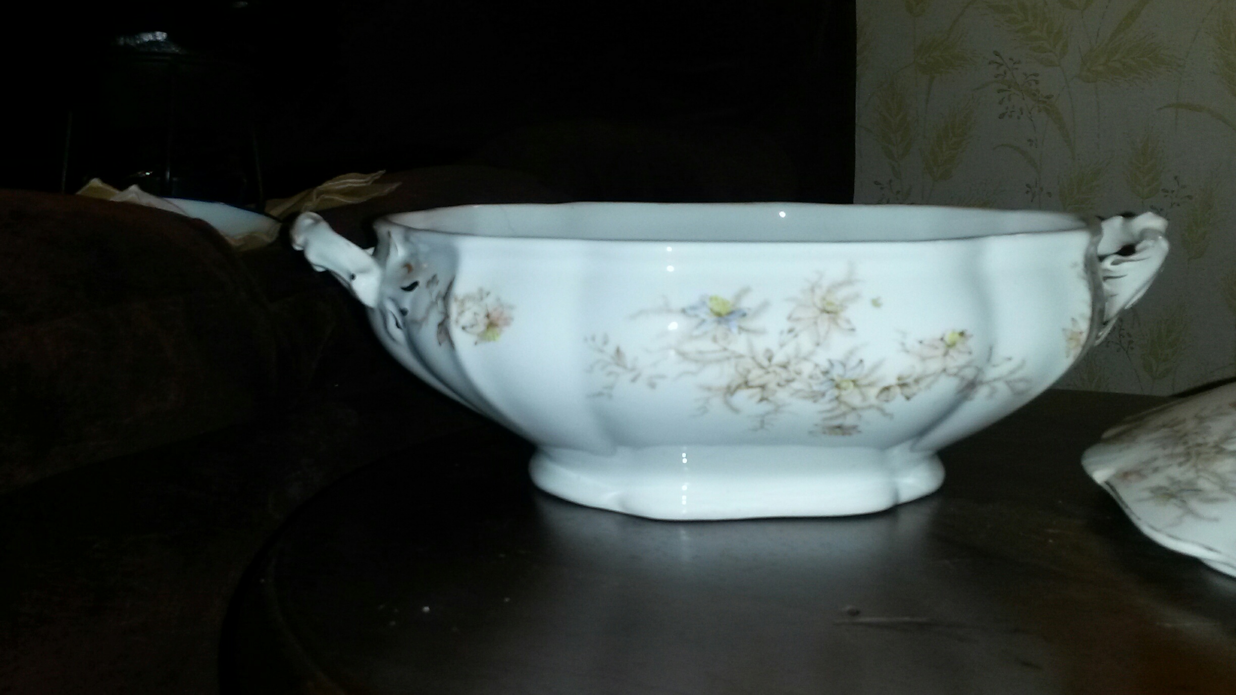 Handled Bowl with lid. smal chip in lid. Mark on botom says John Maddock and Sons England Royal vitreous