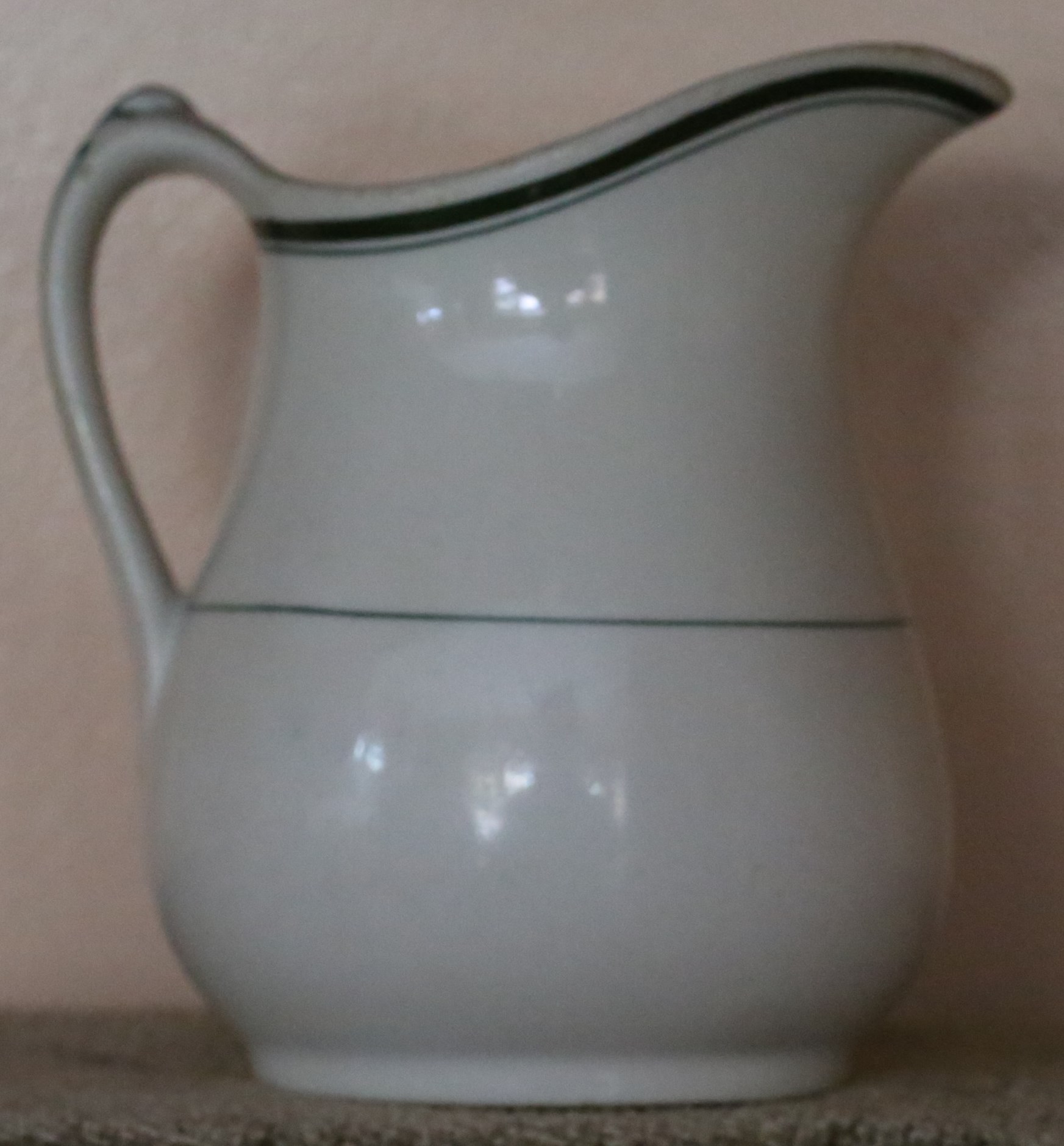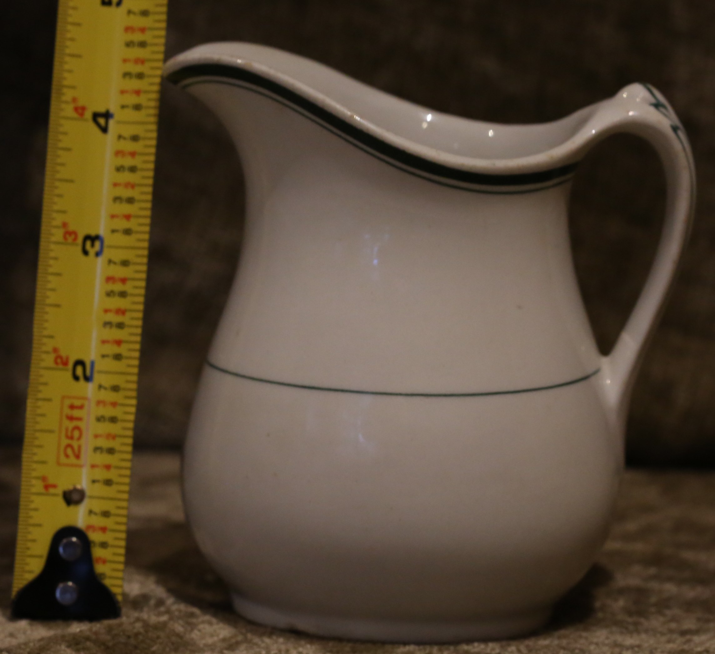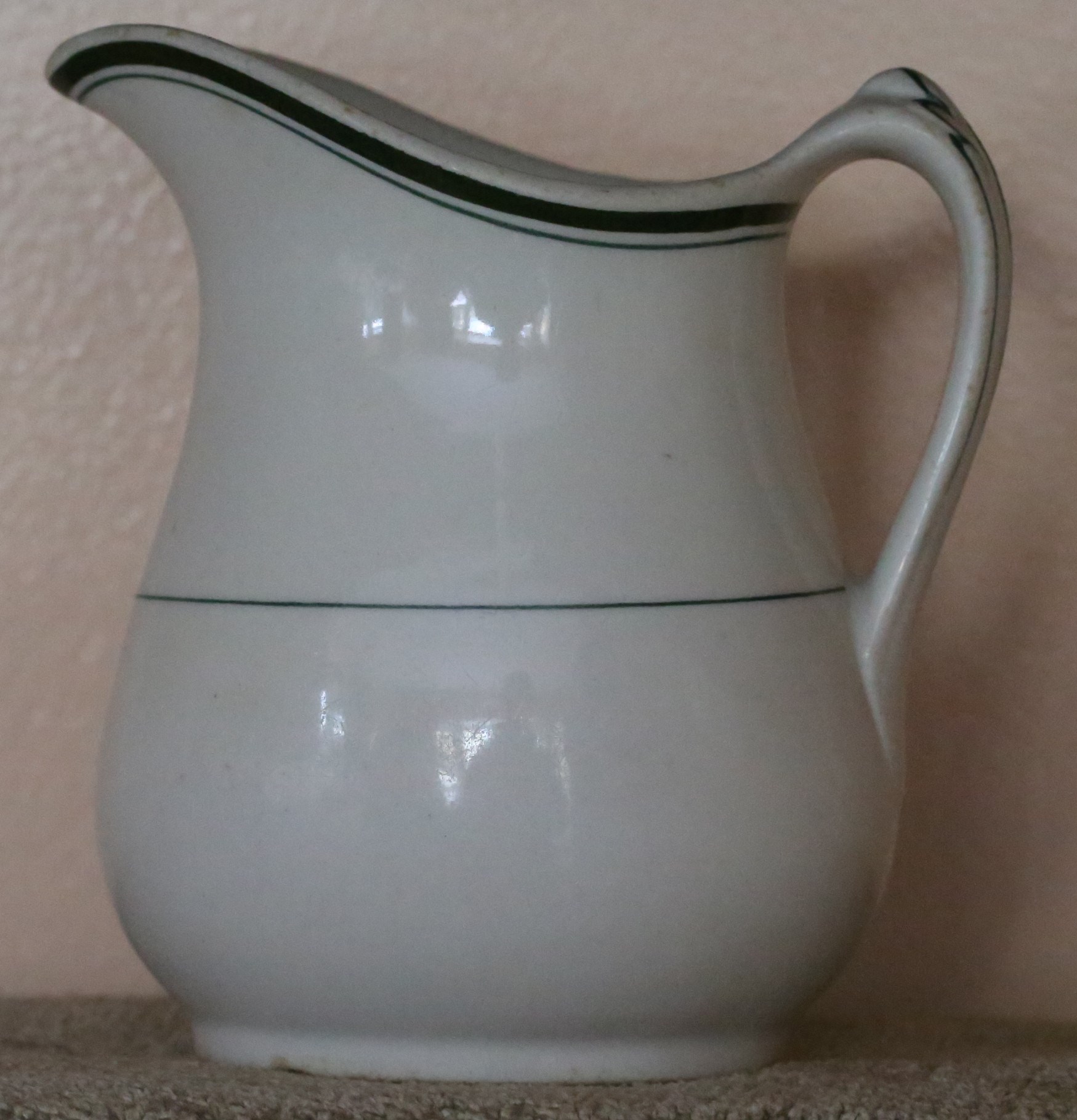 I have a 4 1/2 creamer that is made by John Maddock & Sons. It is white with green band off edge and an inner thin ring. The marking on the bottom of the creamer has a picture of a lion and says Vitrified and JOHN MADDOCK & SONS ENGLAND MADE FOR J.R. GIBNEY NEW YORK.