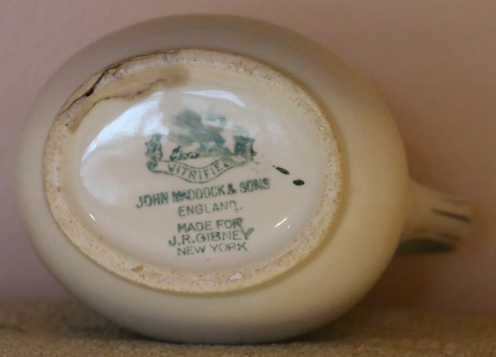 Re: John Maddock & Sons England creamer made for J.R. Gibney...