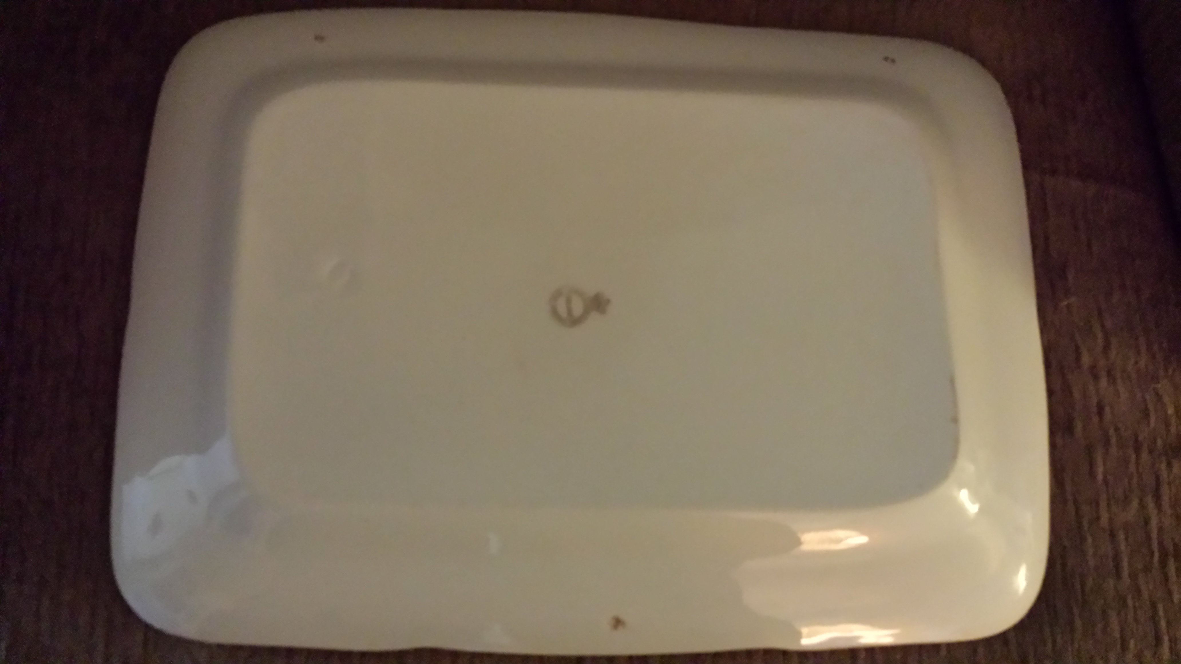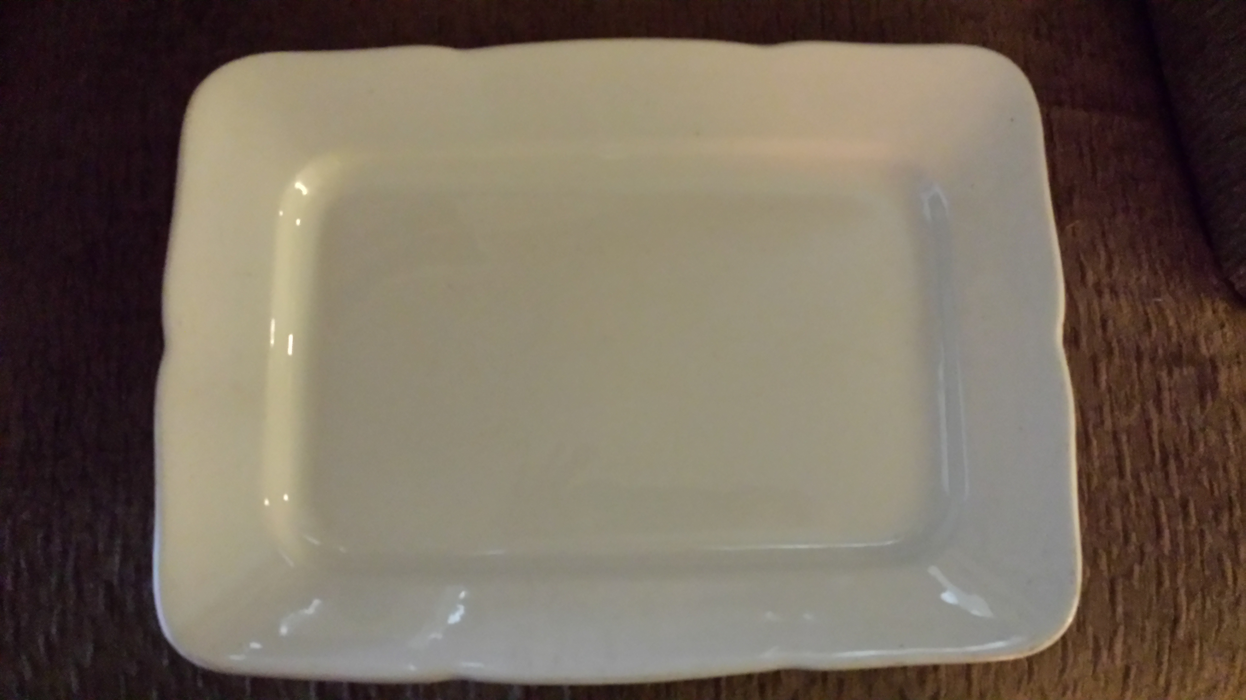 Cream platter. ~13 inches x 10 inches. England Royal Vitreous. No LTD...means it dates from 1860 to 1896. Good condition. No chips or cracks.