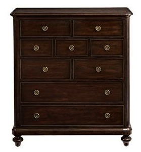 This chest is golden oak; it has fluted details on front corner vertical boards; bun feet with points; one bun foot has a slice missing. Chest has been stripped and revarnished (not perfect job). Drawers are presently being restored; infrastructure was worn out (runners at sides worn down). First attached photo doesn't show the chest well, but I can't upload a better picture until I get the repaired drawers back next week. Second photo (filename: 400.jpg), downloaded from a website advertising Widdicomb pieces, shows a chest whose style is very similar to my old item. Above the stamped mark "John Widdicomb Co., Grand Rapids, Mich." on the interior of the piece appears a grease-penciled mark that says, "1874-1940."