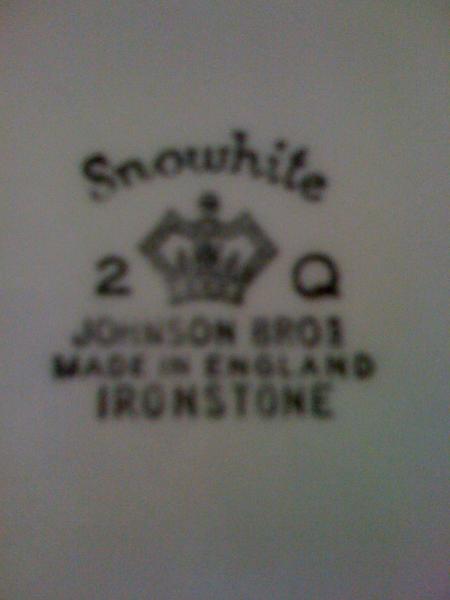 Johnson Bros Ironstone , made in England, "Snowhite"