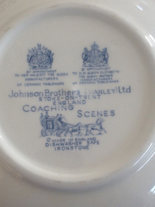 I have a Johnson Brothers (Hanley) Ltd dish set, by appt to her majesty the queen manufacturers of ceramic tableware, by appointment to H.M Queen Elizabeth The Queen Mother manufacturers of Ceramic Tableware Stoke-on-trent England, Coaching Scenes, made in England Diswasher safe ironstone.