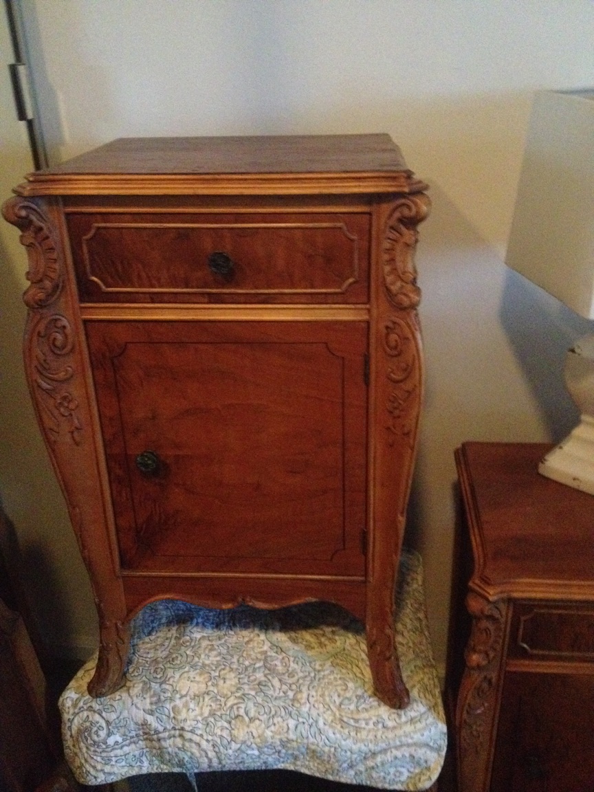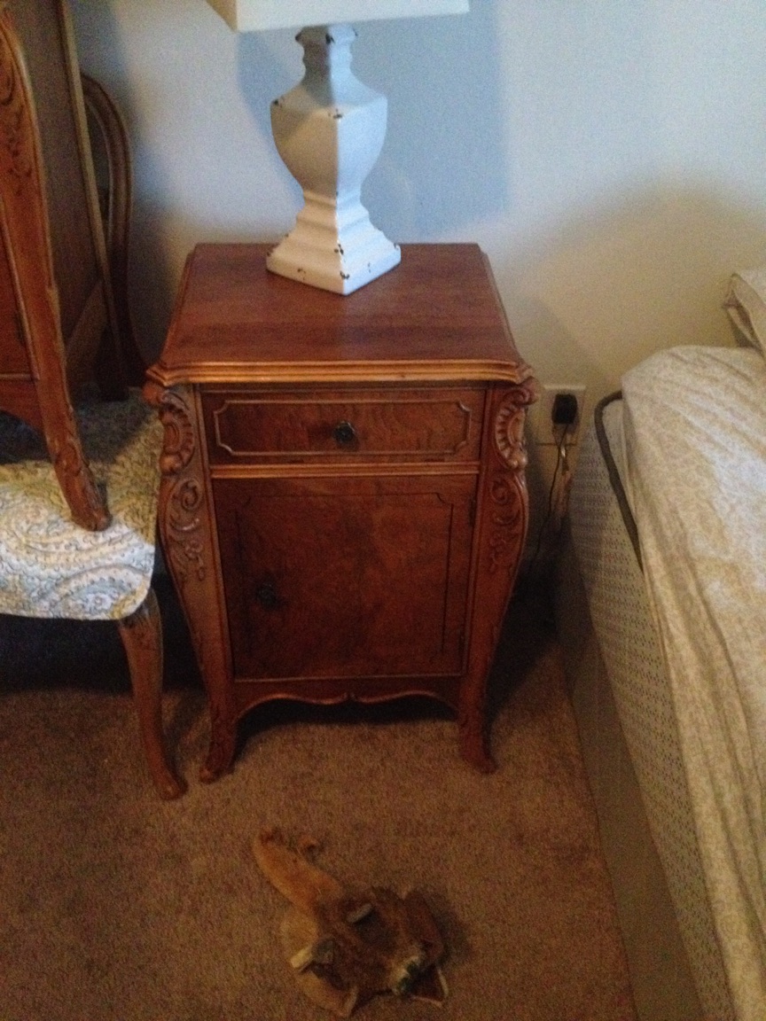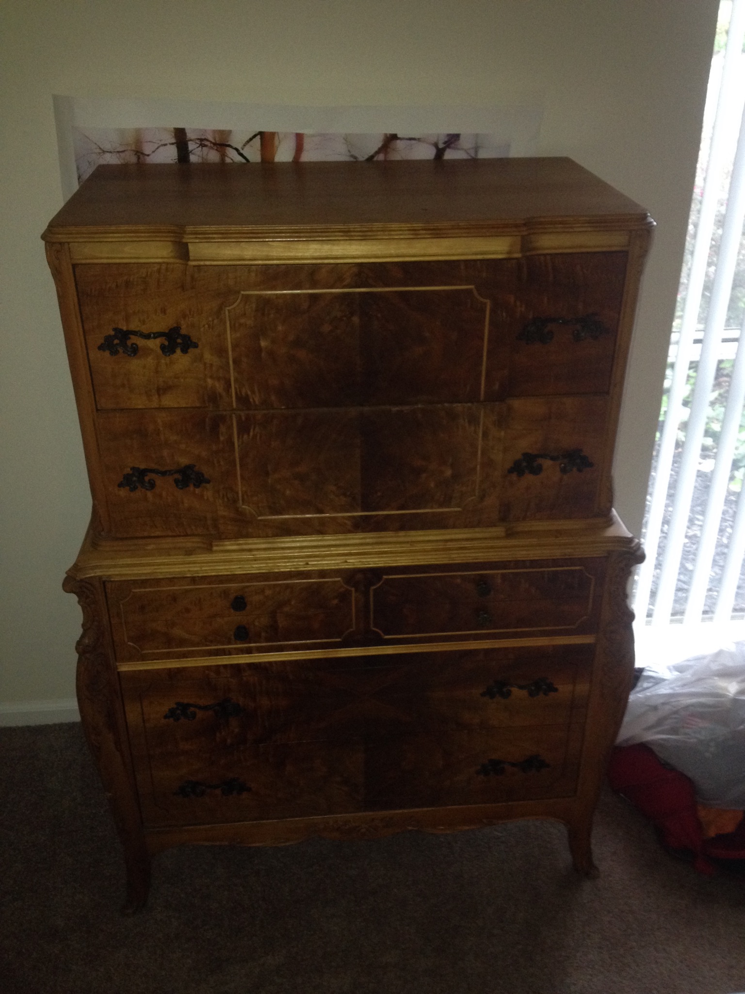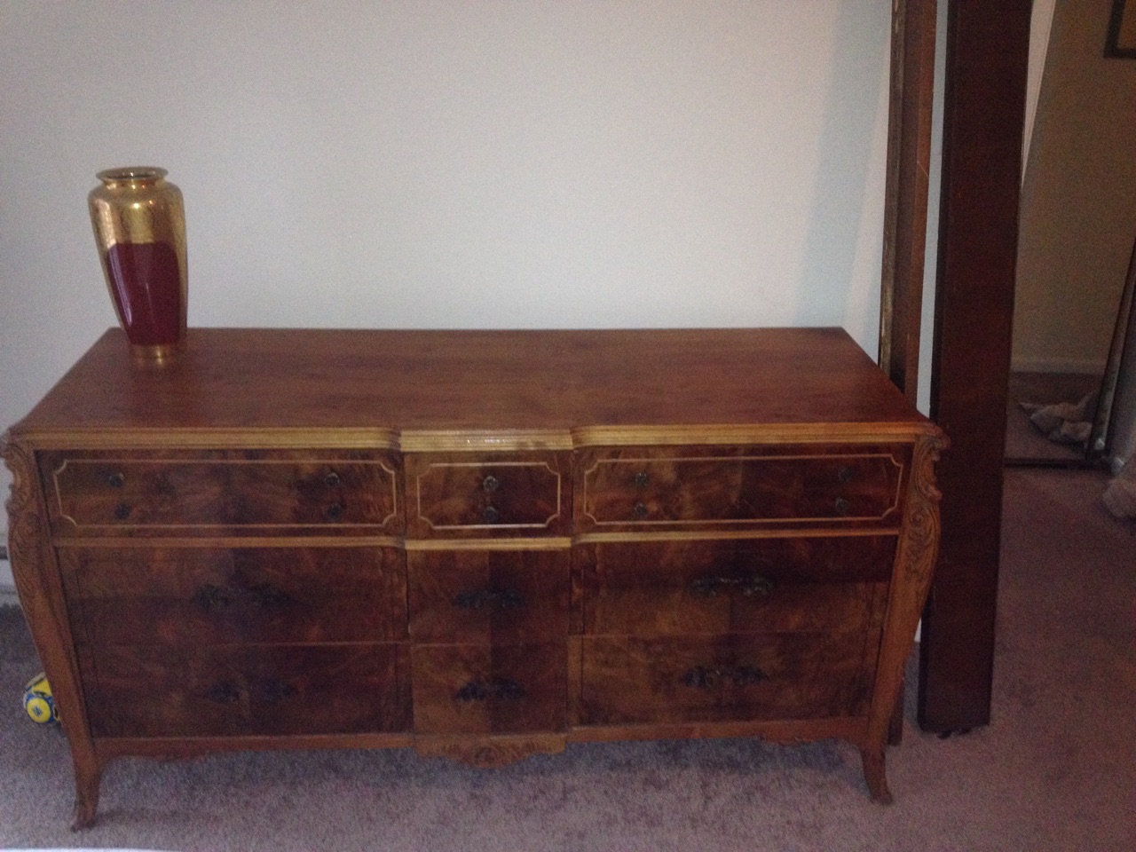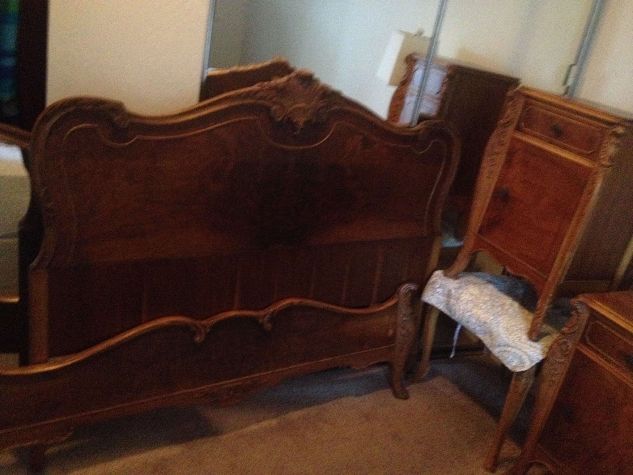 beautiful 7 piece bedroom set includes: head-foot and side boards, dresser and mirror, highboy, (2) night stands and chair. Belong to my grandparents, purchased early 50's