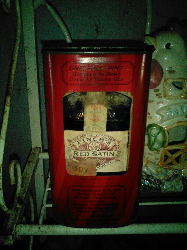 The Finch Whiskey I have is from 1917. It is still in the tin protection box along with the key. It is in amazing condition for such an old bottle. It is full up to the neck line, right above the shoulder. It's never been opened at all. Past appraisals have been from $300- $400.