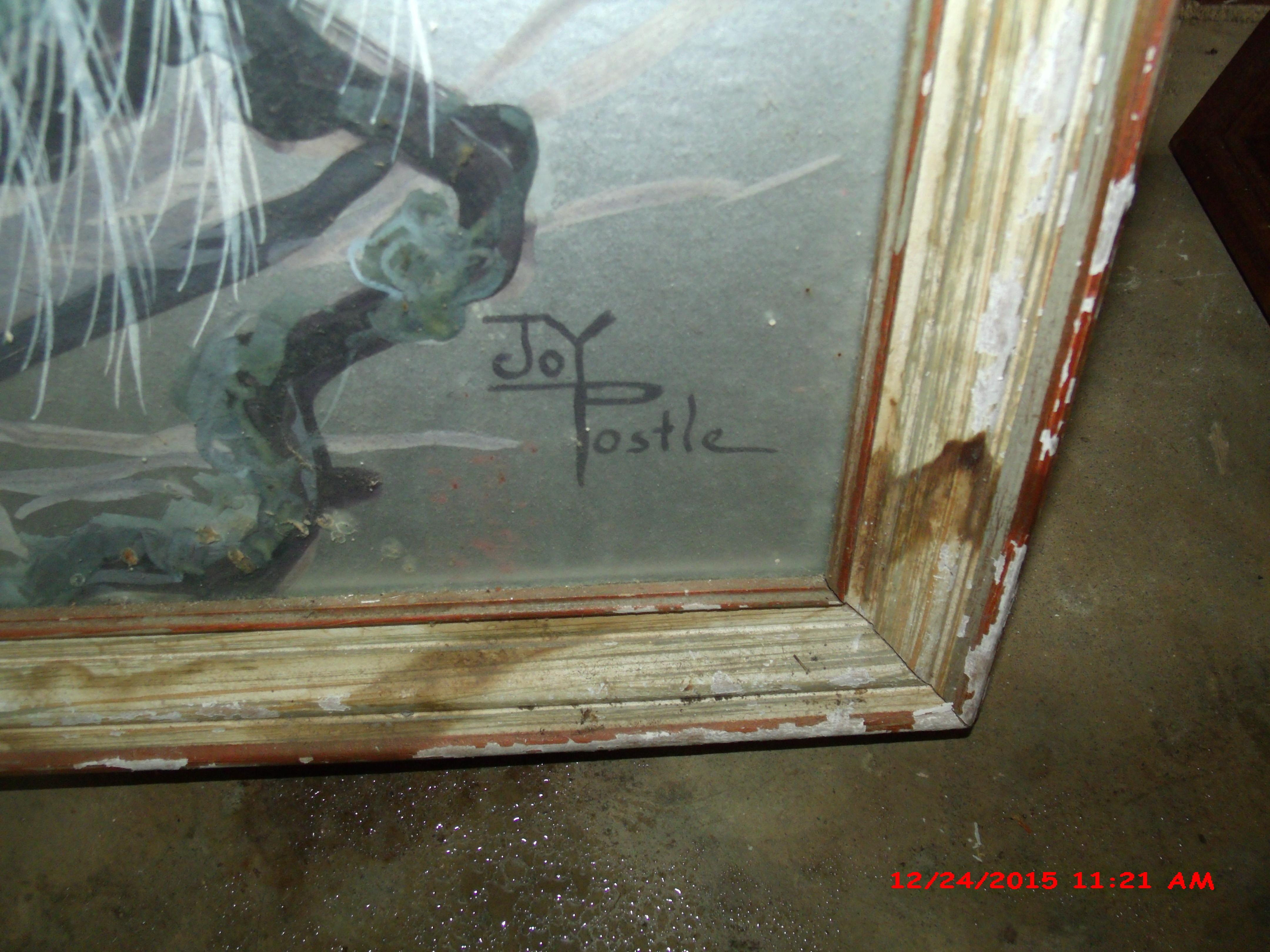I HAVE A JOY POSTLE PAINTING. I HAVE FOUND PAINTINGS OF HERS BUT I COULD NOT FIND THIS ONE. WOULD LIKE TO GET MORE INFO AND VALUE. THANK YOU