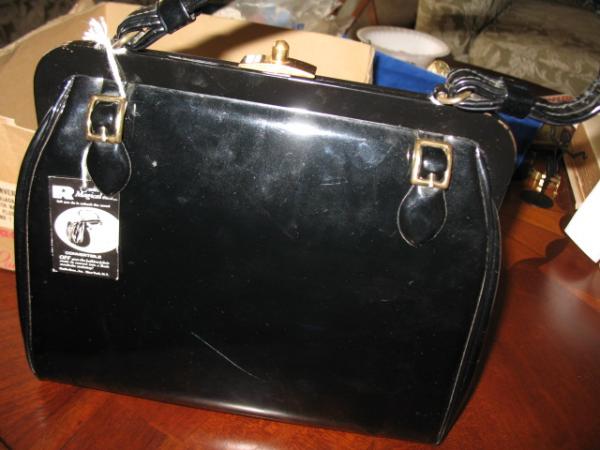 Black patent leather kadin purse with 3 different styles you can attach to the purse to make it have a different look. Just need to know the value if anyone has a idea.