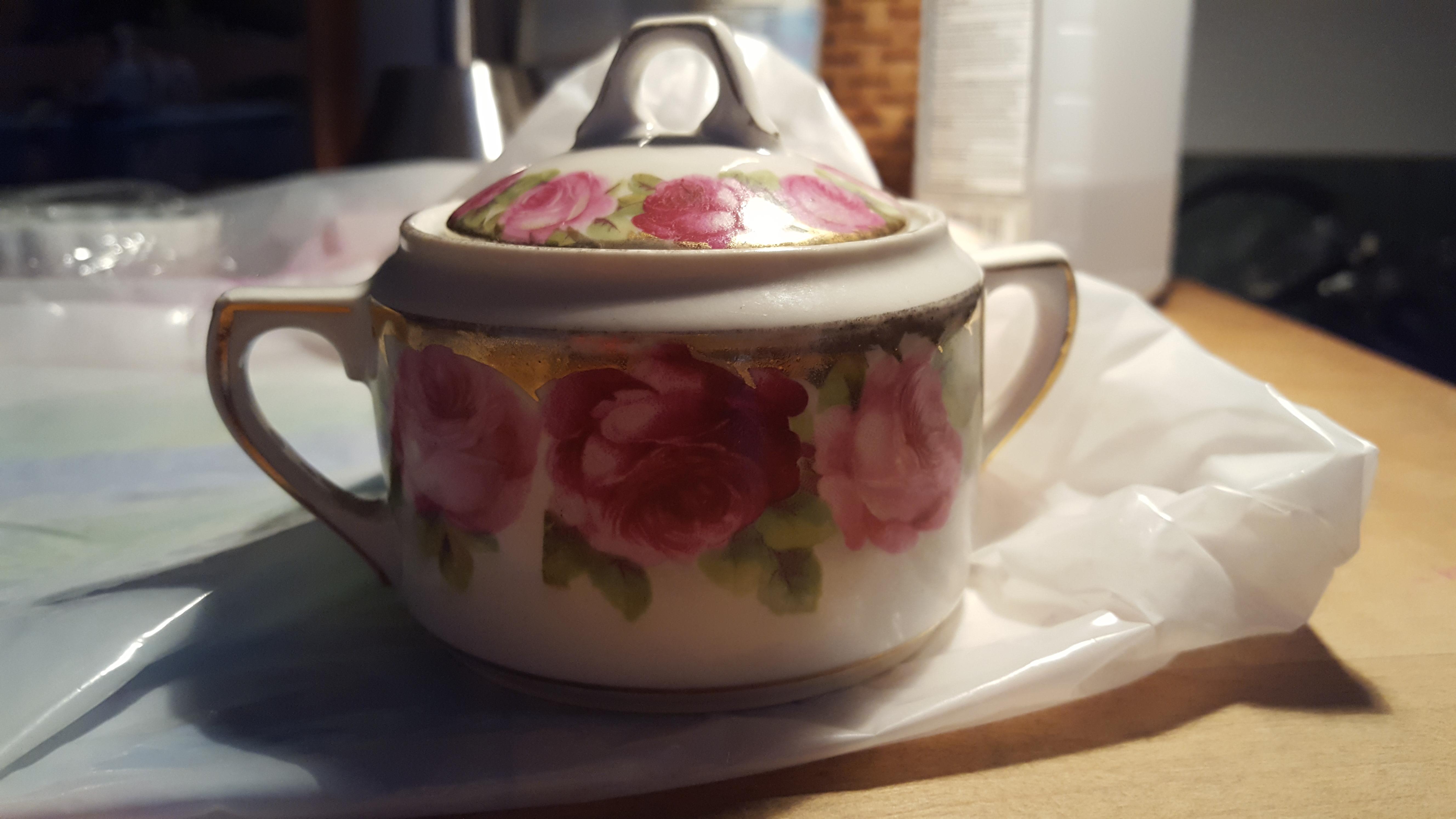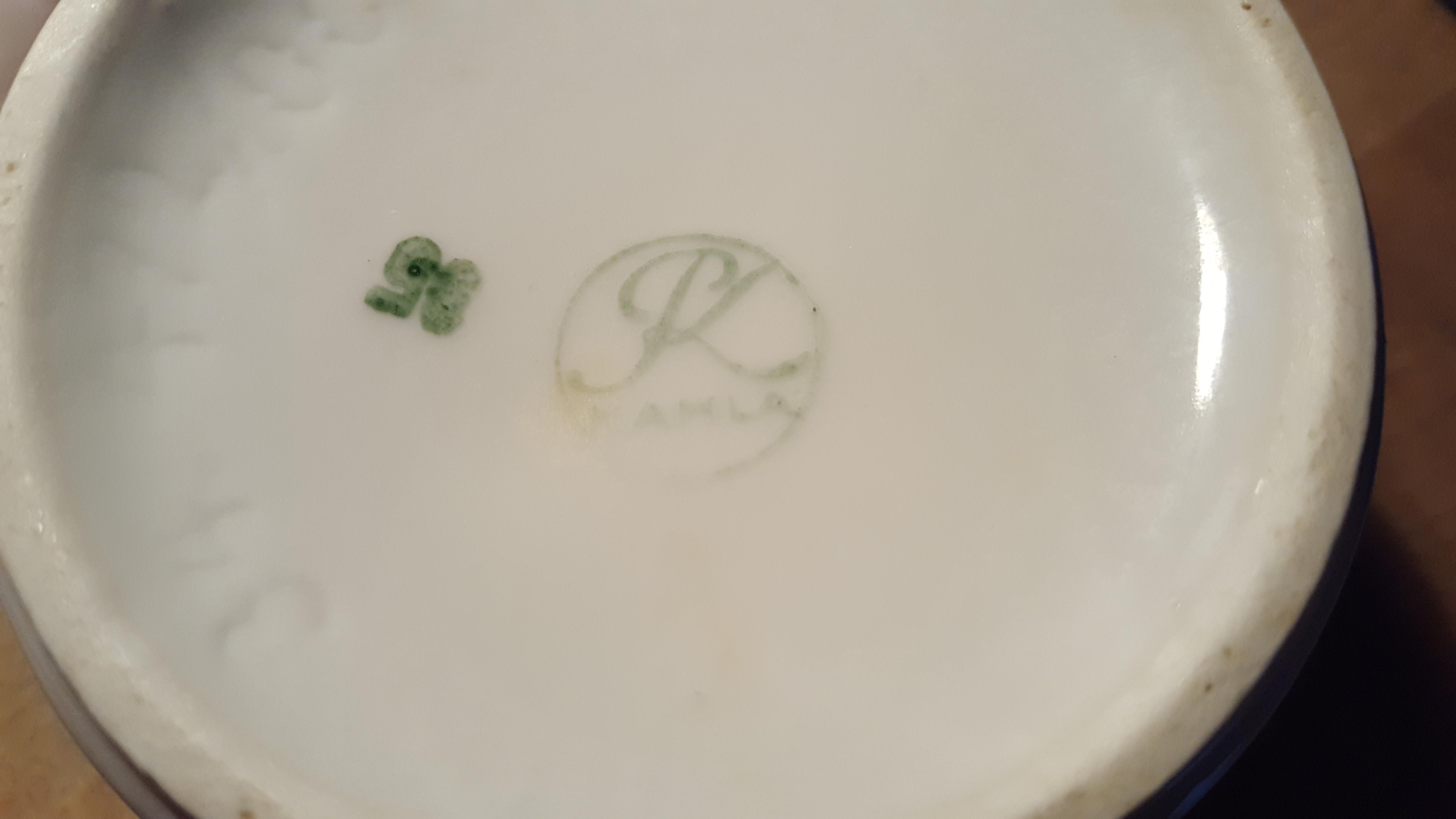 Sugar bowl and lid made by Kahla of Germany. Made between 1924-1928...