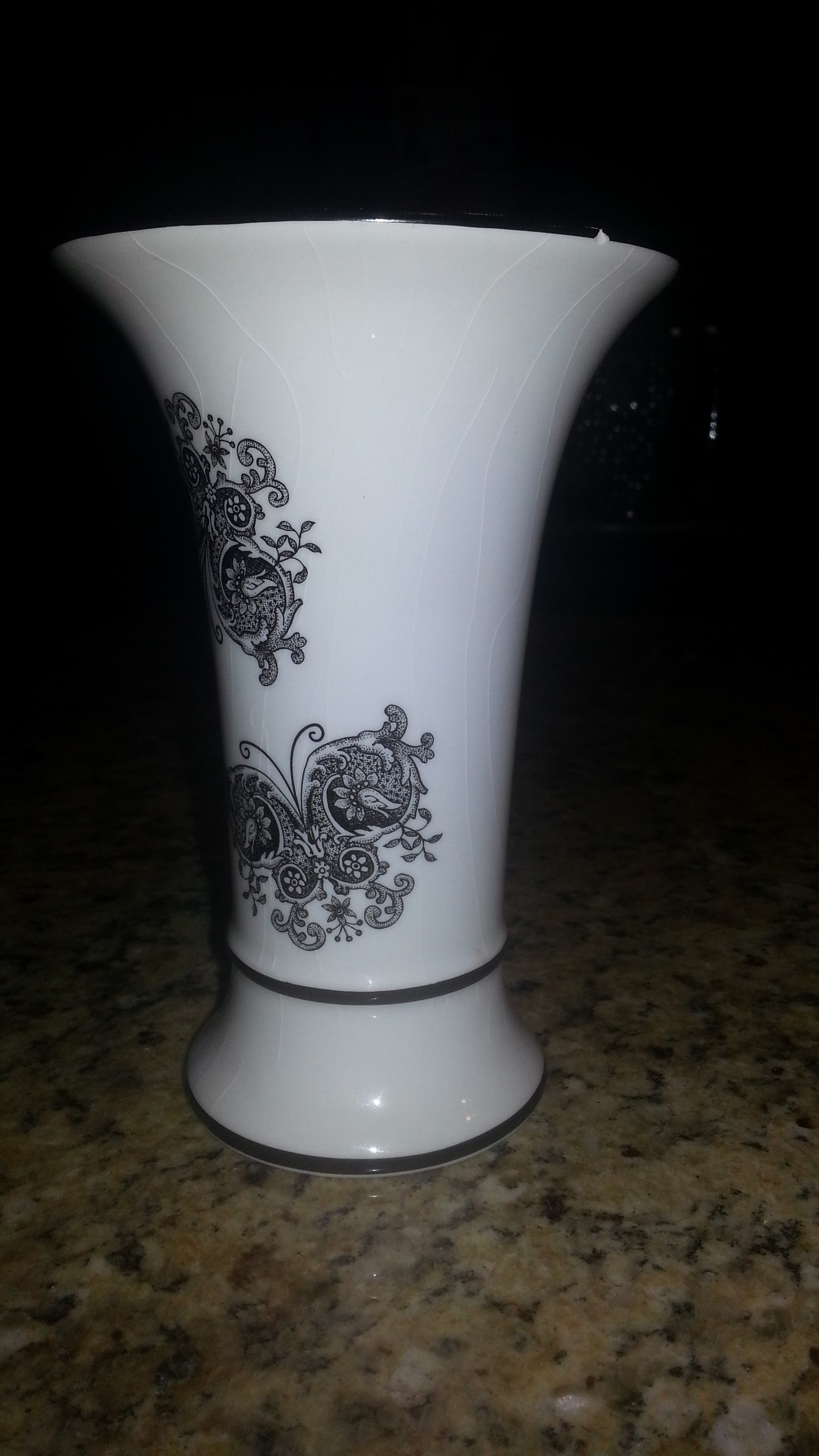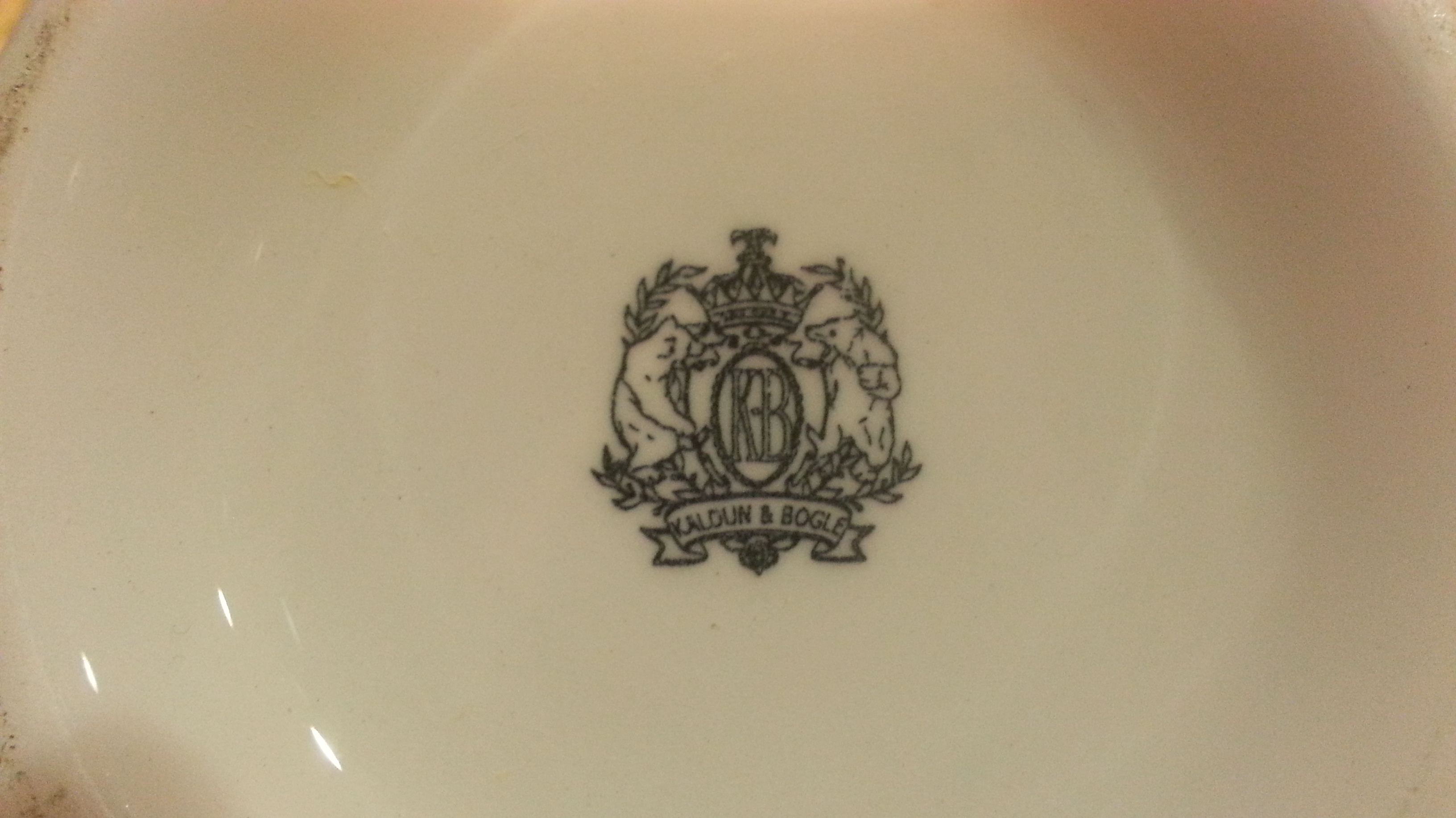 This is a Kaldun & Bogle vase with obvious mark on bottom. I can not find any example of this type that was made by them. I know they started as a company in 1995 and produced many "trial" pieces. Which may explain why I can't find anything similar. The glazing is cracked as I try to show in one picture, and it has a small chip on the upper lip, also pictured. I emailed the company, and received a reply saying it was probably made around 2002-2004. The person that replied didn't say much more than that, which makes me think he didn't really know anything about it.