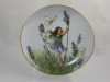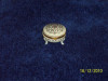 The bowl is about 3to 4 inches in diameter and 2 to 3 inches tall. It is whithe with gold line trim. with 3 flowers aranged on the top in color. they are roses and another three in plain white on the lid. also has the roses on the sides of bowl. inside is a pouch that smells of lavender.