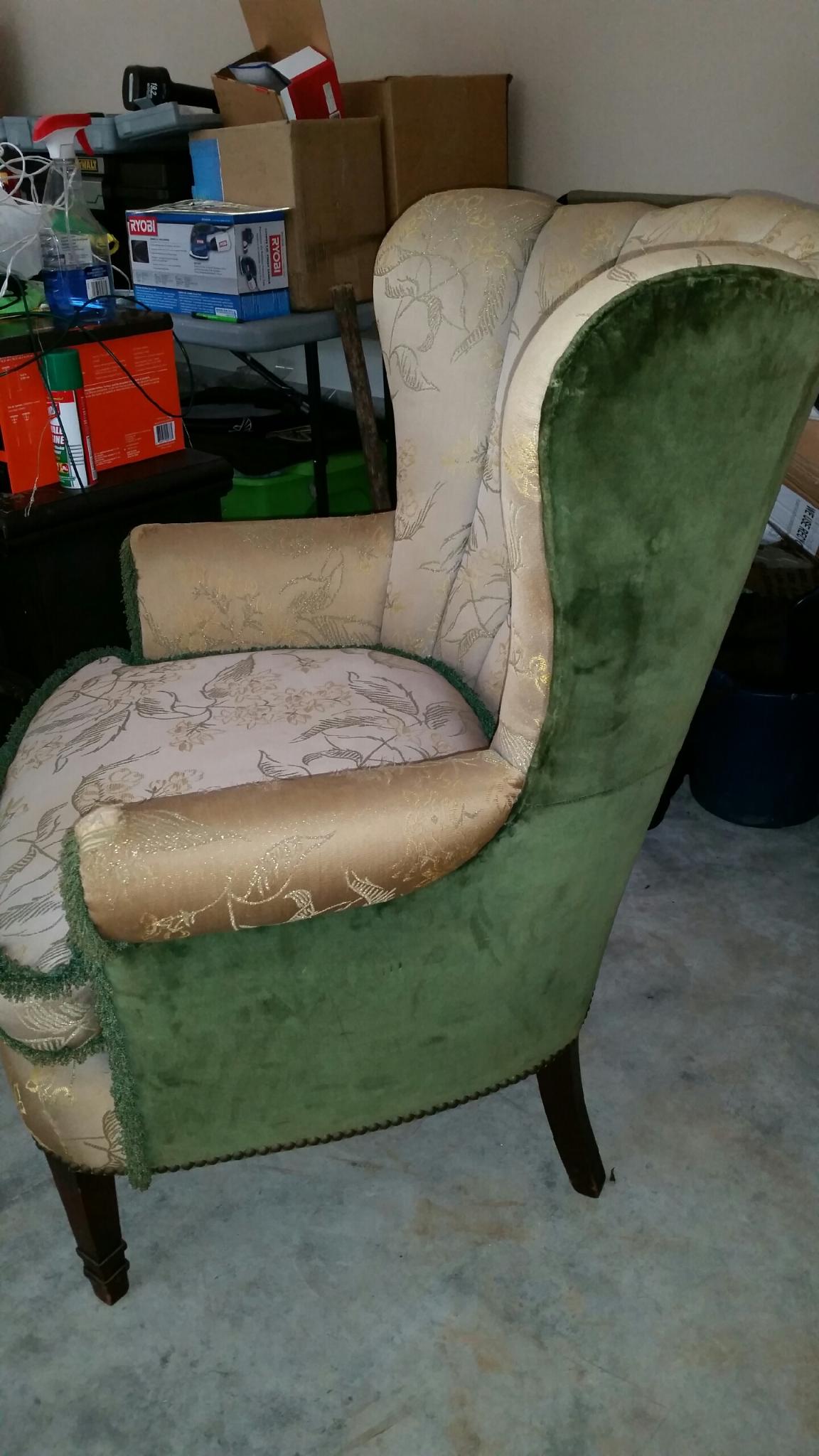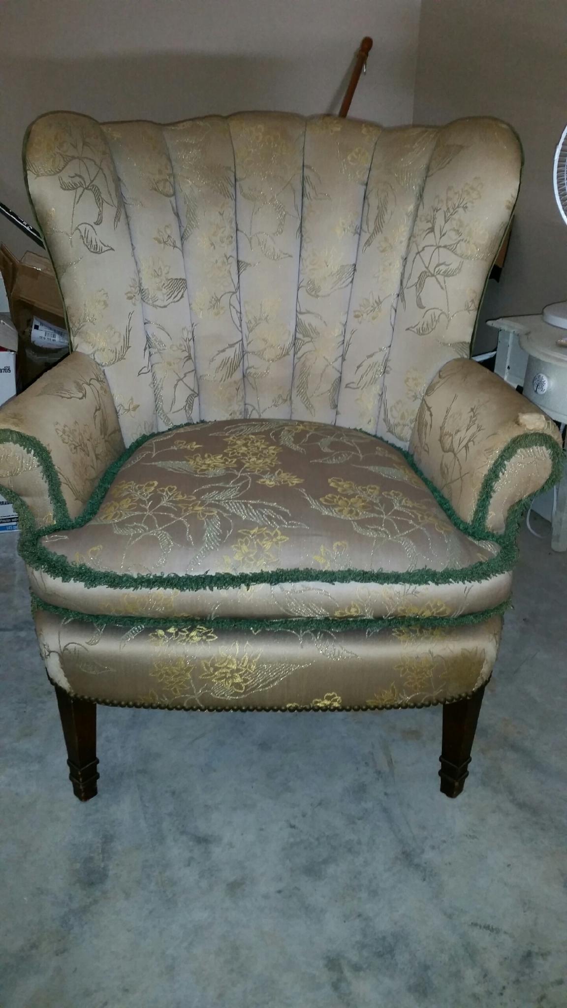 This was a flea market find 2 days ago. I have searched the internet for more information or more pictures of this chair and cant seem to find anything other than info on the founder himself. Soloman Karpen. Other than the arms of the chair where you would push yourself up the chair is in great condition. No other tears or wear places other than the arms. The seat cushion is very heavy and removeable. All tacks are still in place no springs or anything seems to be broken. sits very well. The legs do have a few knicks, but otherwise are in great shape. The back and sides are a very deep pretty green, kinda velvety to the touch. The design has a gold hue on the front and the seat section. The tags on the seat section are in tact. I want to reupholster this piece but am wanting to see what its worth before i start putting "My touch" on it, lol. Any help would be appreciated. Thank you.