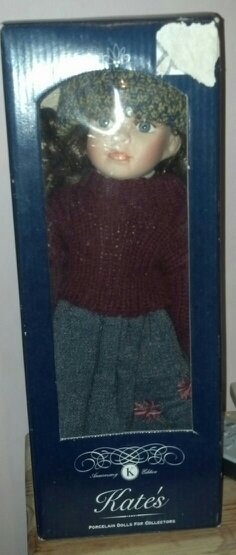 Never opened, in mint condition Kate's Anniversary Edition porcelain doll. Name of the doll is unknown.