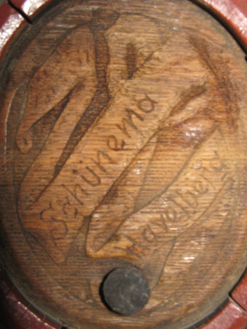 On the first side of the keg writes,,,, Schönema Havelberg. On the other hand, writes,, Hopfen und Malz - Gott erhalts - 1903,,. Keg was devoted to beer. The body from keg was repainted in 1984 with the color of wood.