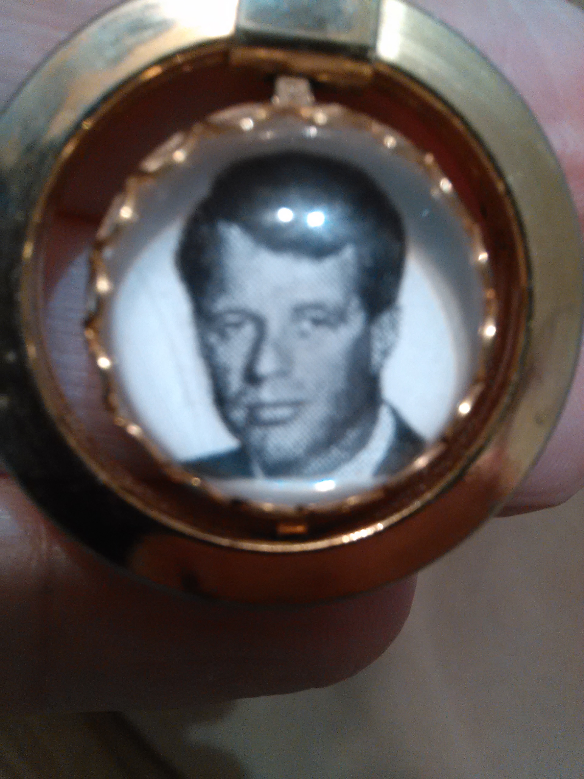 Bracelet with a swivel charm depicting Kennedy on one side and Dr. King on the reverse. It was my mother's, but was gave to her via an elderly friend.