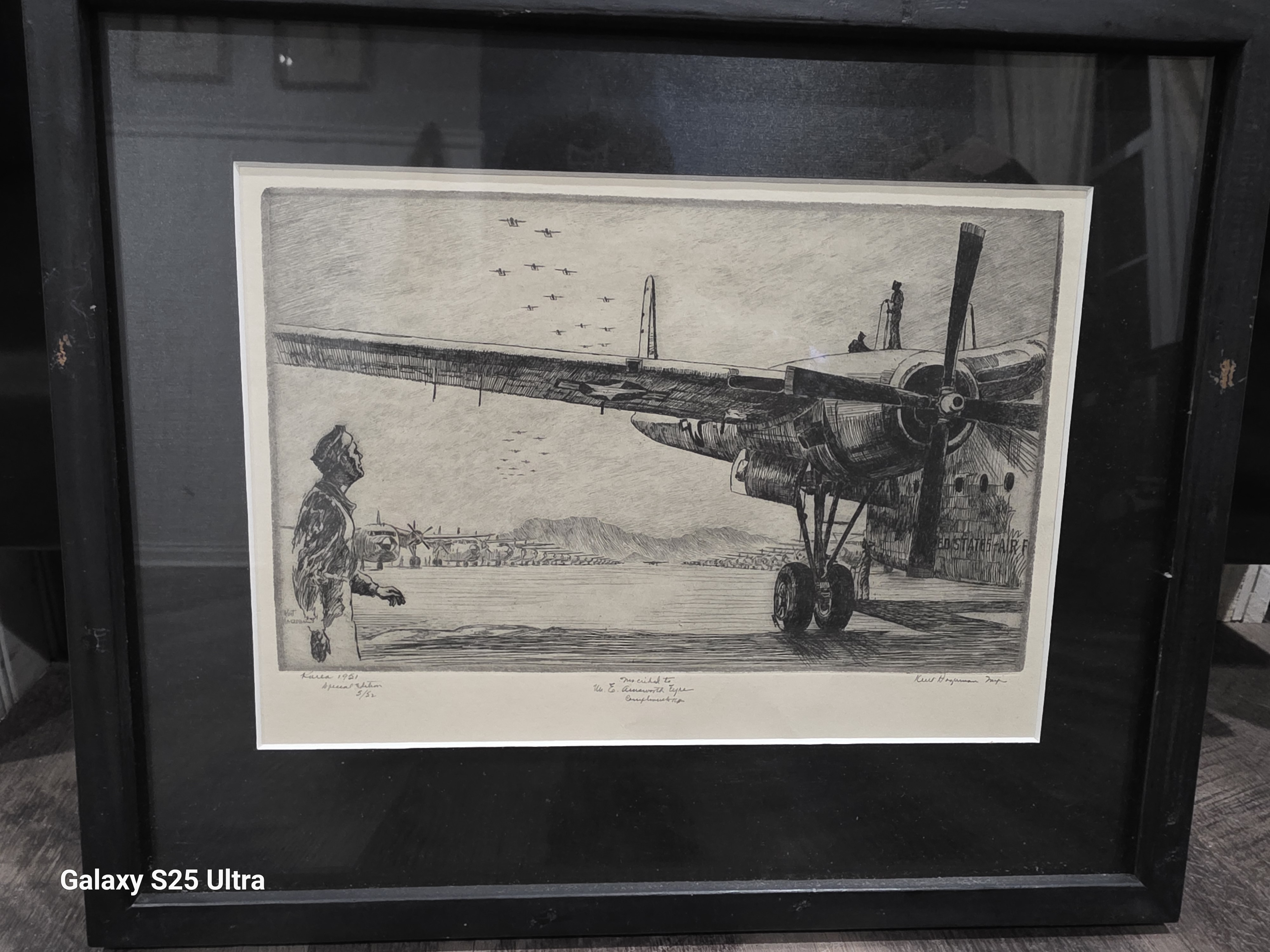 Collector Appeal: Collectors value this etching for its historical significance, artistic quality, and limited edition status. Aviation art, especially from notable periods like the Korean War, attracts enthusiasts and collectors who appreciate the intersection of art and history.