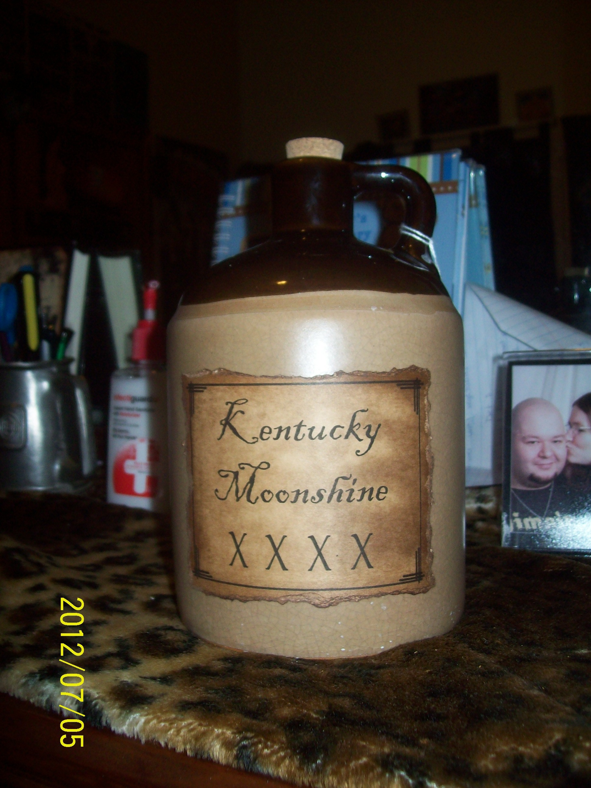 It's a 12" brown jug that has "Kentucky Moonshine" written across it with four x's below it. It has a blue engraved star with the number 2 inside. Its in very nice condition.