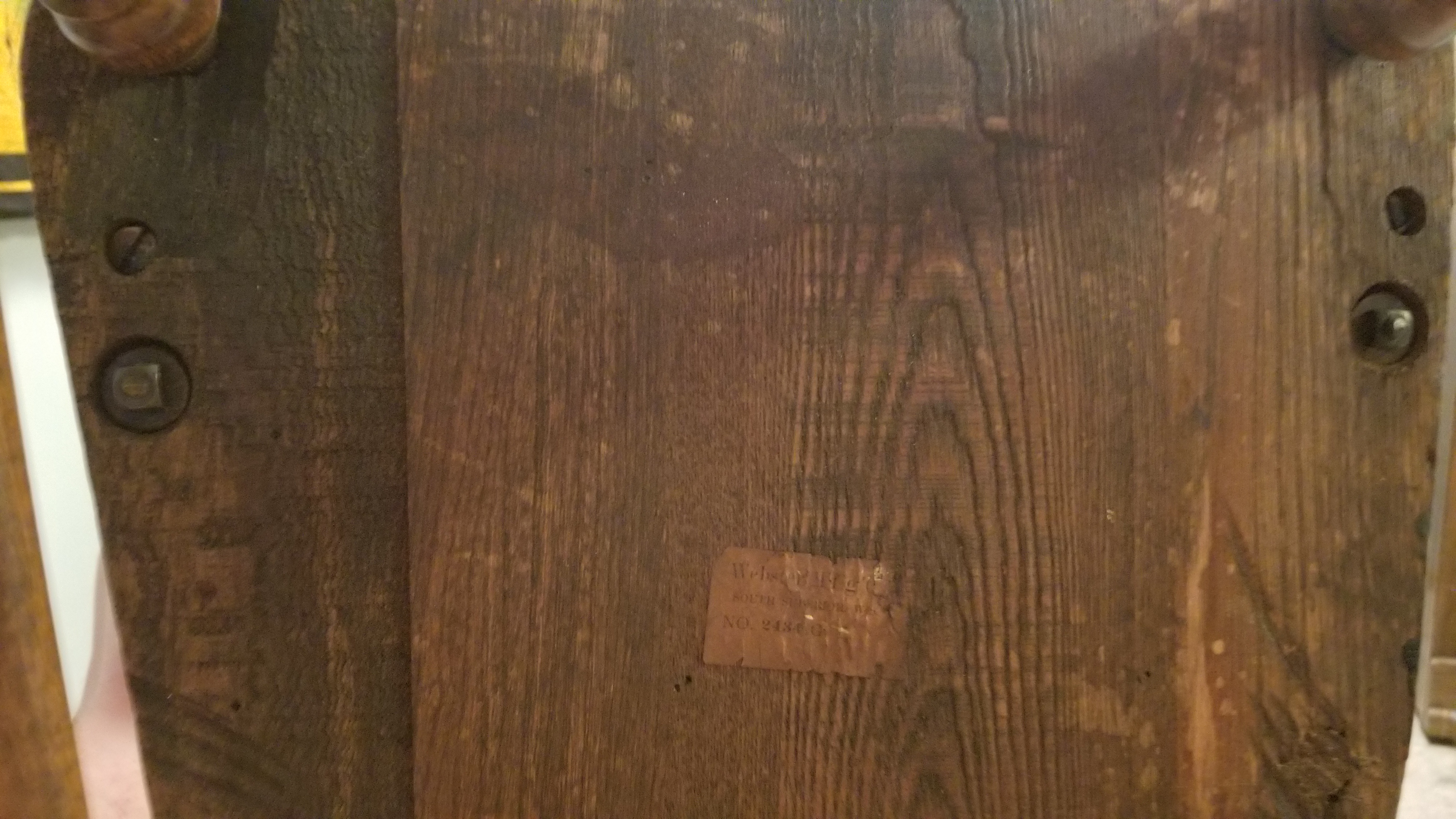 Description Hey Guys I am new and still very green when it comes to antiques, I have an interest in them thanks to my father. But unfortunately don't know much about them. Today I came across a childs rocking chair at a garage sale that I thought was really neat, I wanted to get it because about six months ago my dad surprised my fiance and me with an antique rocking chair he refinished for us after learning that my fiance was pregnant and we're expecting our first child. So when I seen this kids rocking chair I thought how cool would that be for me to give my soon an antique rocking chair like mom and dads!...... lol sorry for rambling on... So I was hoping maybe to get some insight and learn a little more about this chair, I'm guessing I over paid for it as I gave $40. But it'll be the sentimental value to me. On the chair there is a tag that you can still kinda make out, it says Webster Mfg Co and underneath that it says NO.2434.... and something else I cannot make out.... Sorry again for rambling on, but thank you for any and all input! Cameron