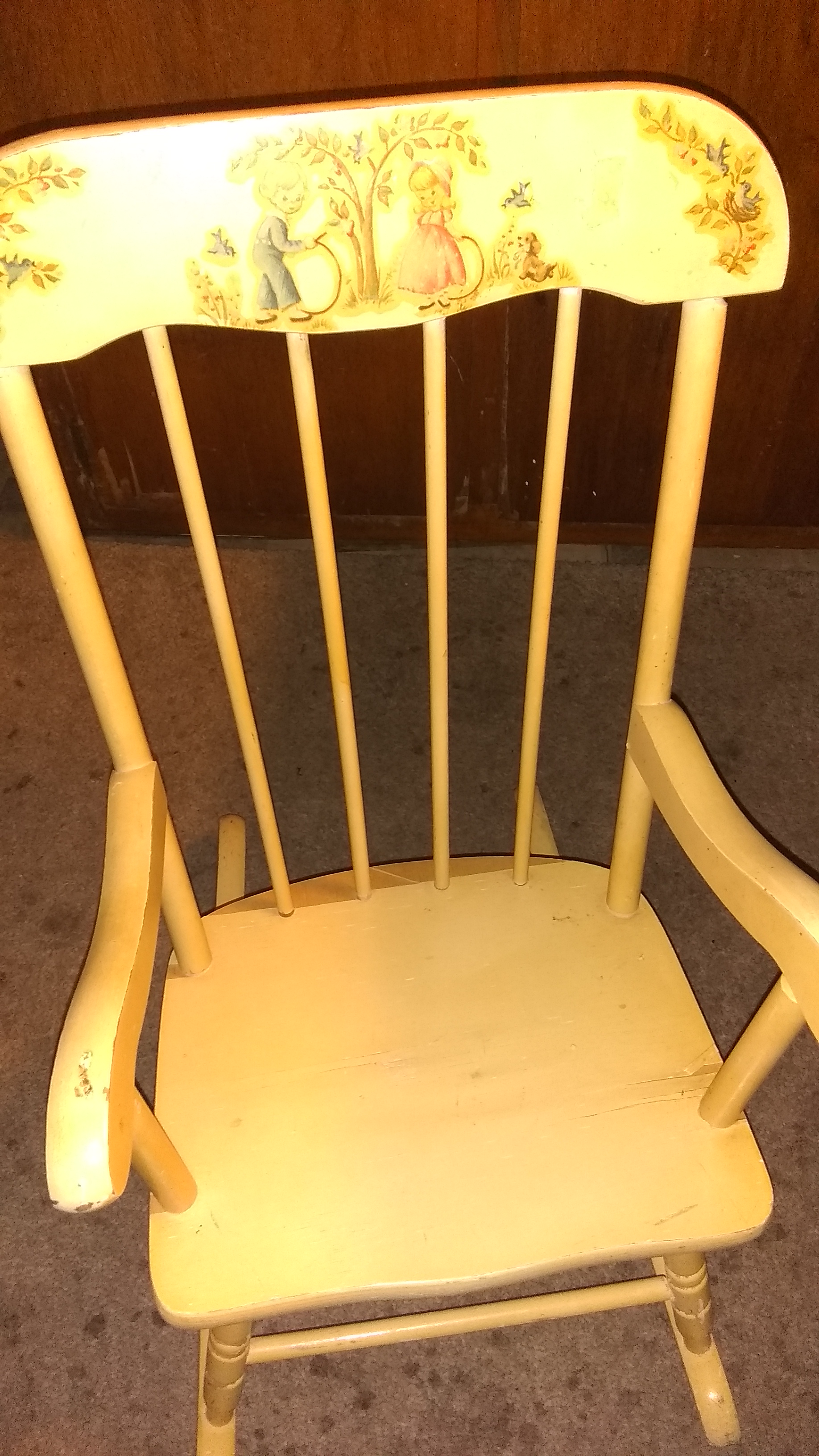 Antique kids rocking chair with music box plays when the child rocks back and forth. In great condition and kids love it. Solid wood