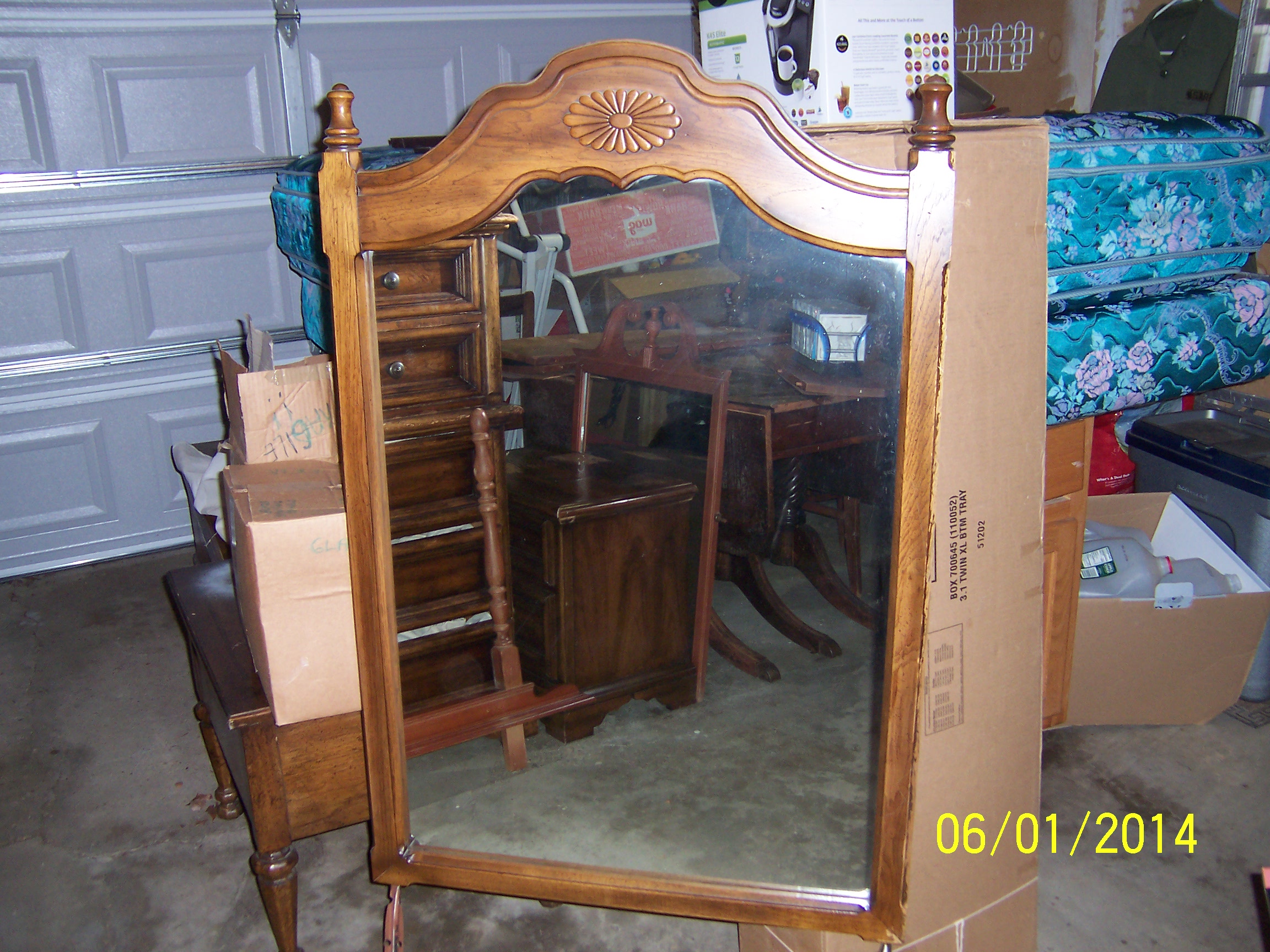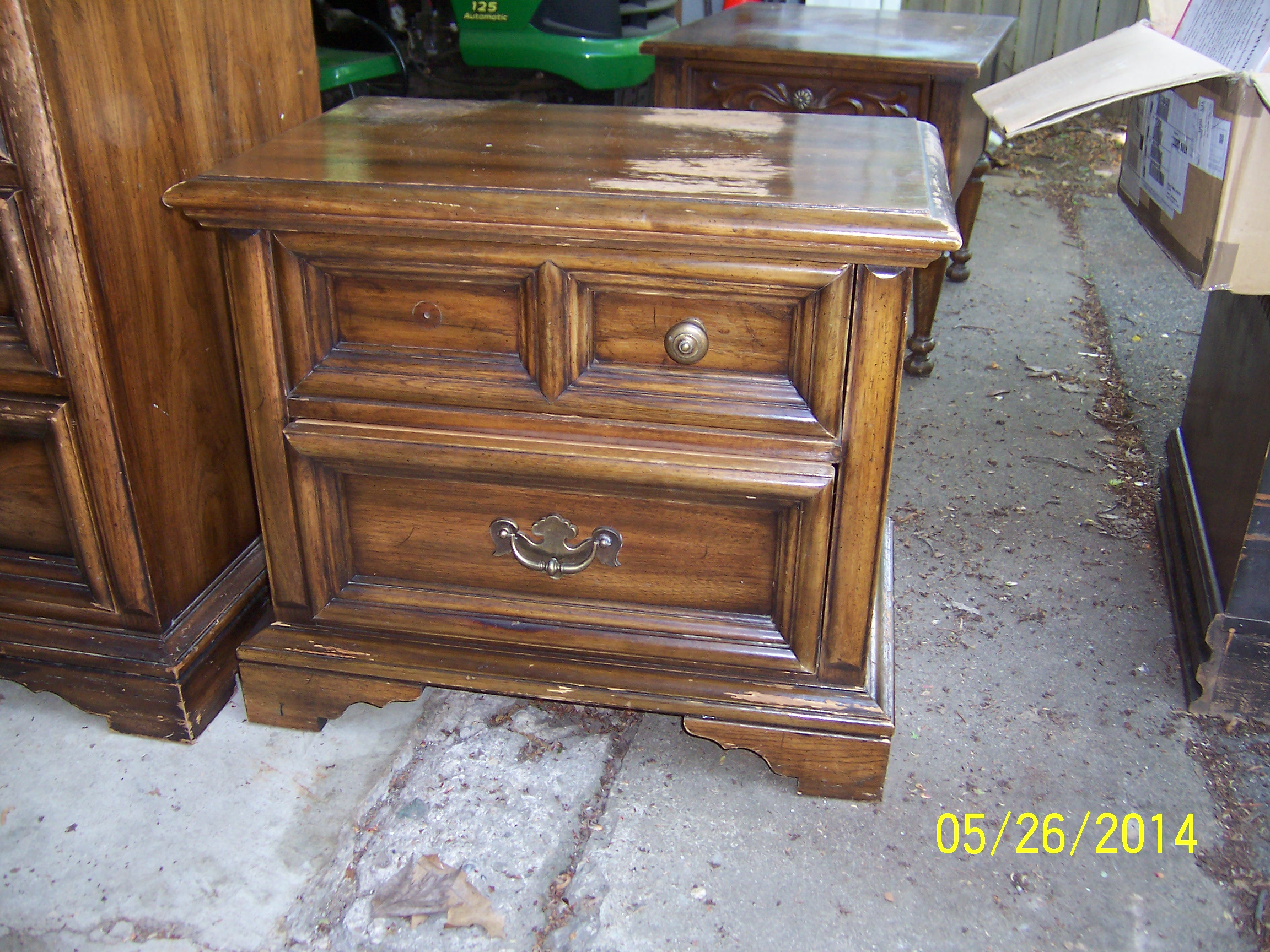Attached are detail pictures of a bedroom suite that was water damaged from storage. The items are still structurally sound. All pieces are in need of refinishing. We are looking for appraisal of actual value before water damage for insurance coverage.