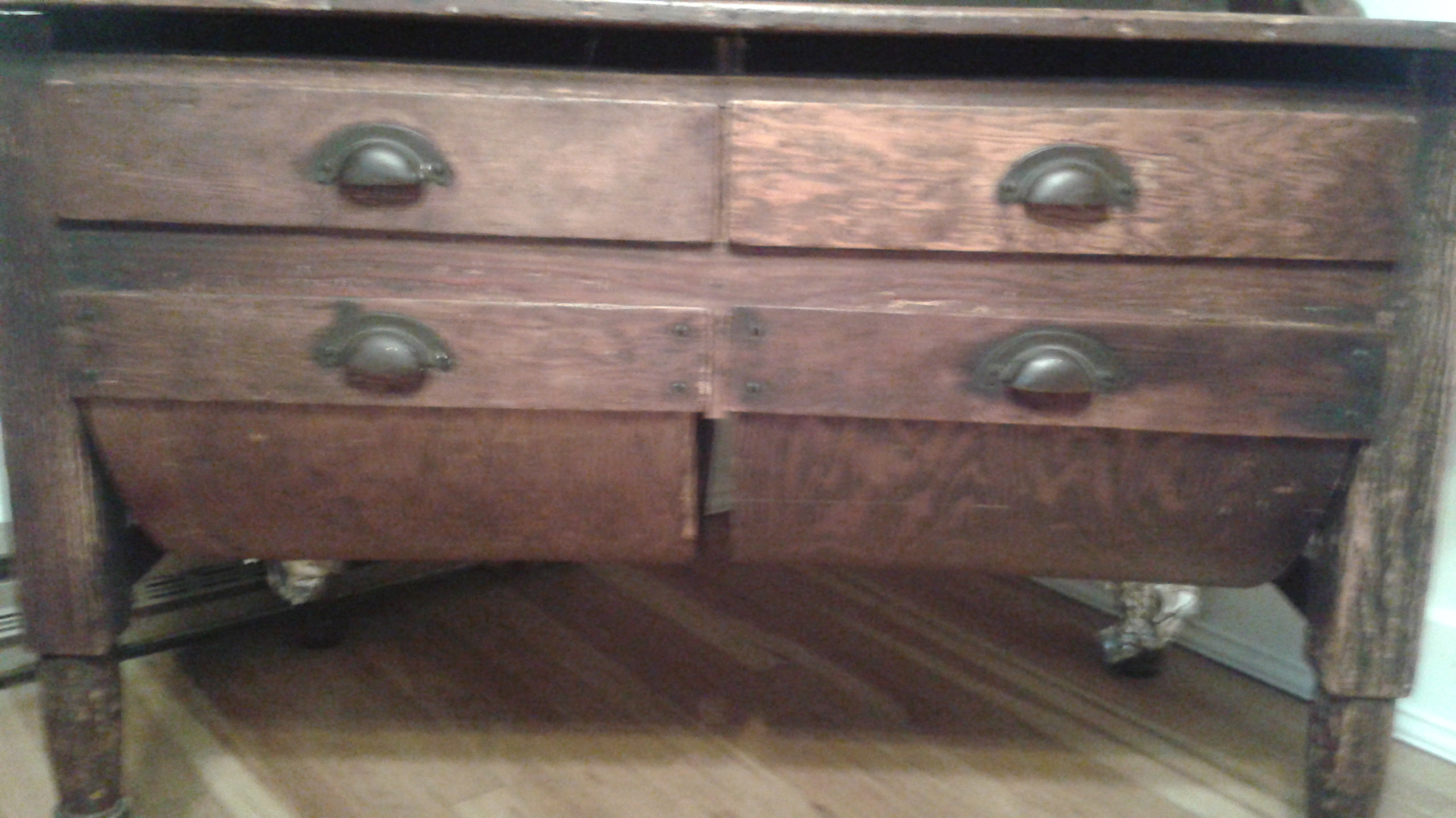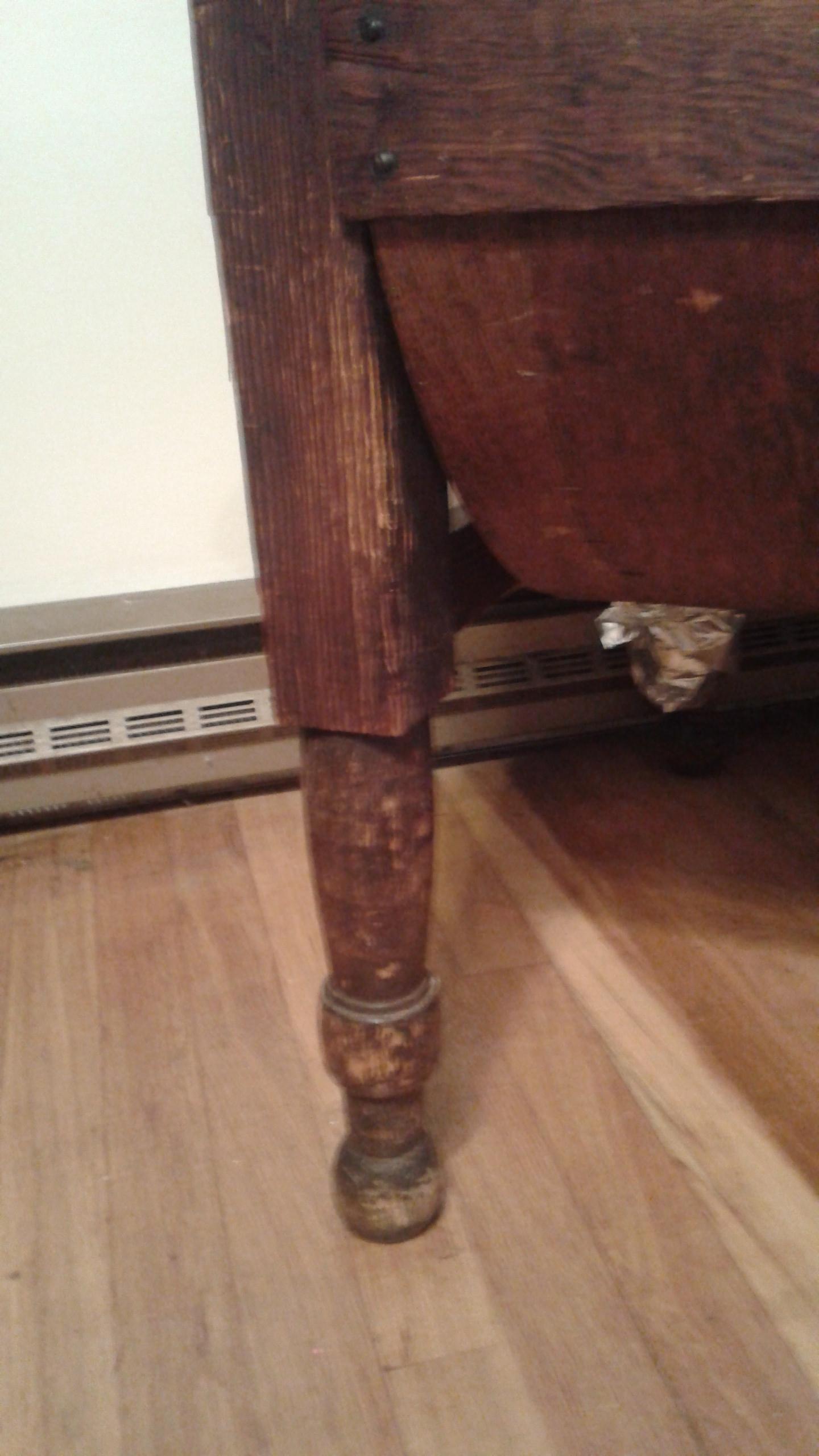 The wood on the counter top is starting to split.  At some point an animal scratched up 3 of the legs.