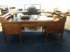 Based on the images thos desk is of course quite modern, but loosely based on the Chippendale style. Values for them depends a great deal on their condition, as refinishing is quite expensive for larger pieces like this. We see Kittinger desks like this in need of some restoration sell in the $300.00- $500 range at auction.