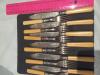 There are 6 forks and knives, and appear to have an ivory handle on them.