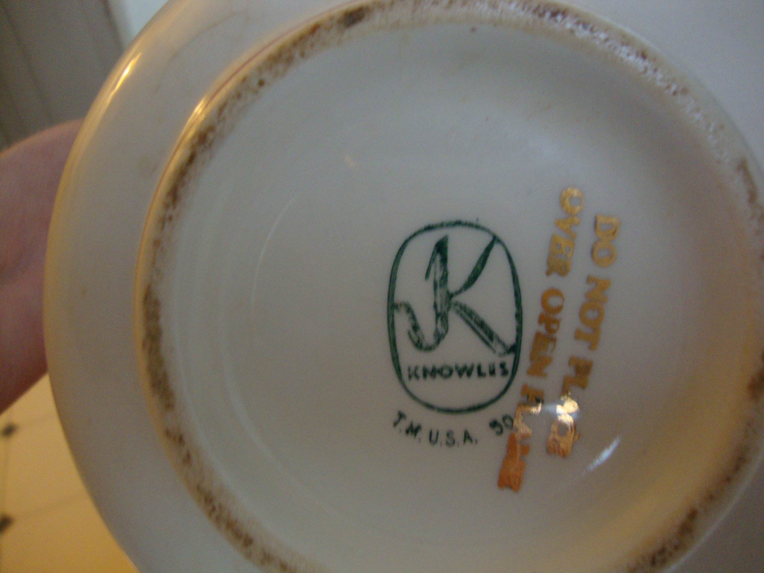 Marking on bottom (pic enclosed) is an oval with a' K' and underneath 'the K' KNOWLES.