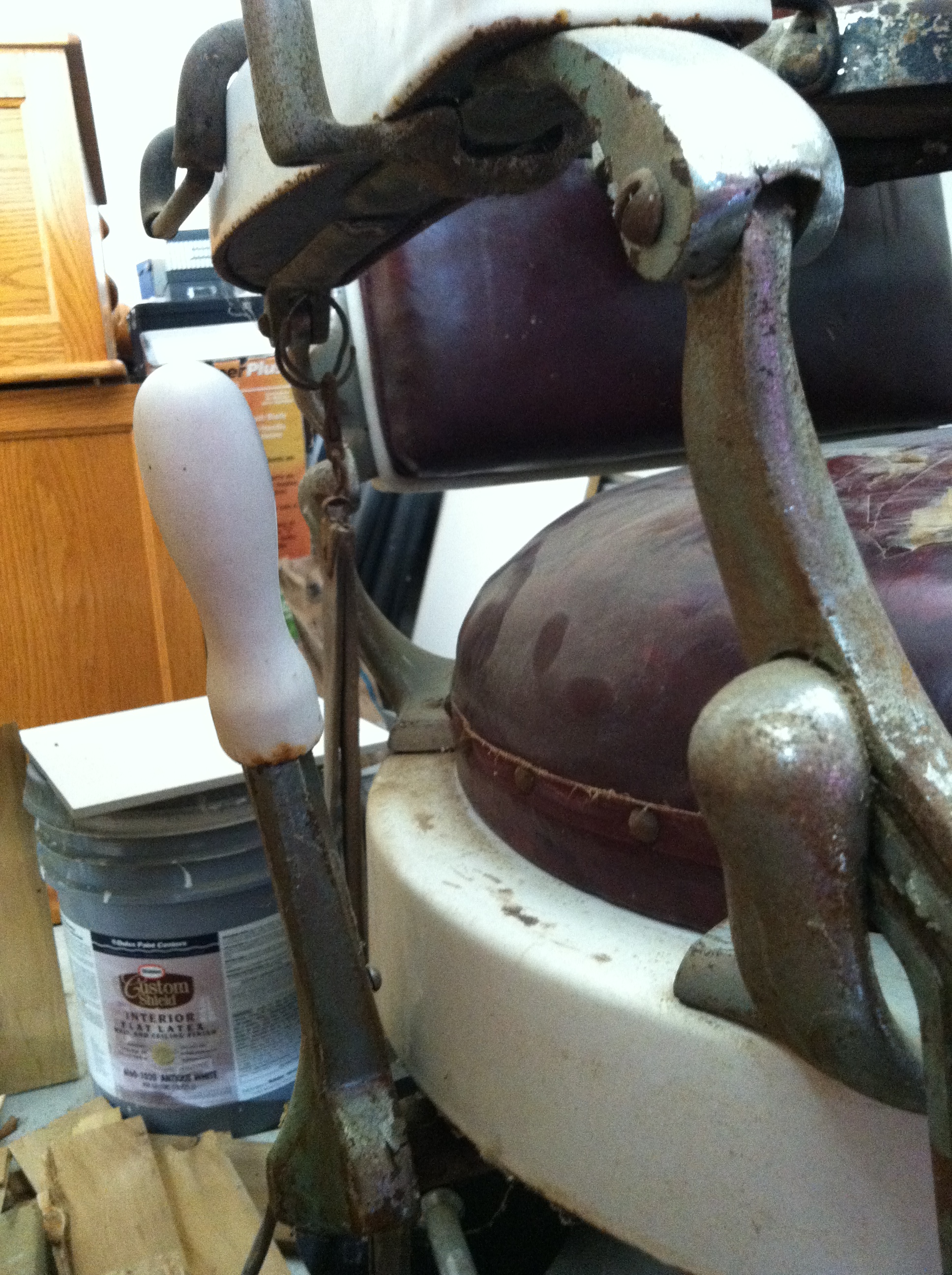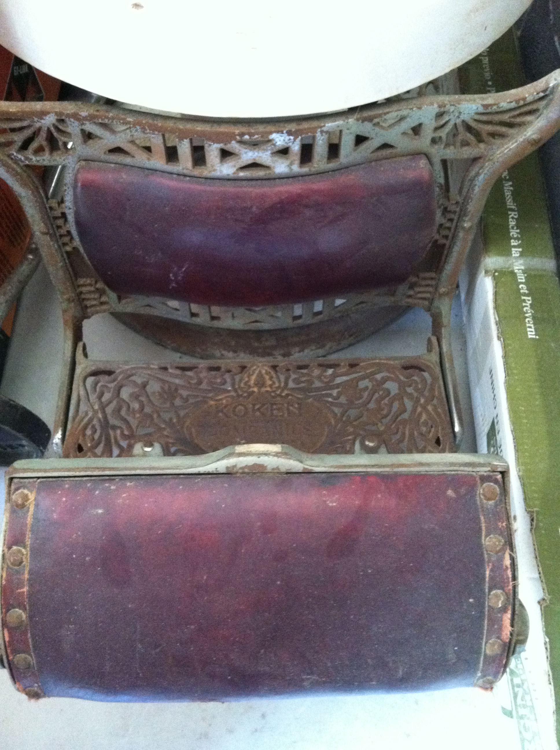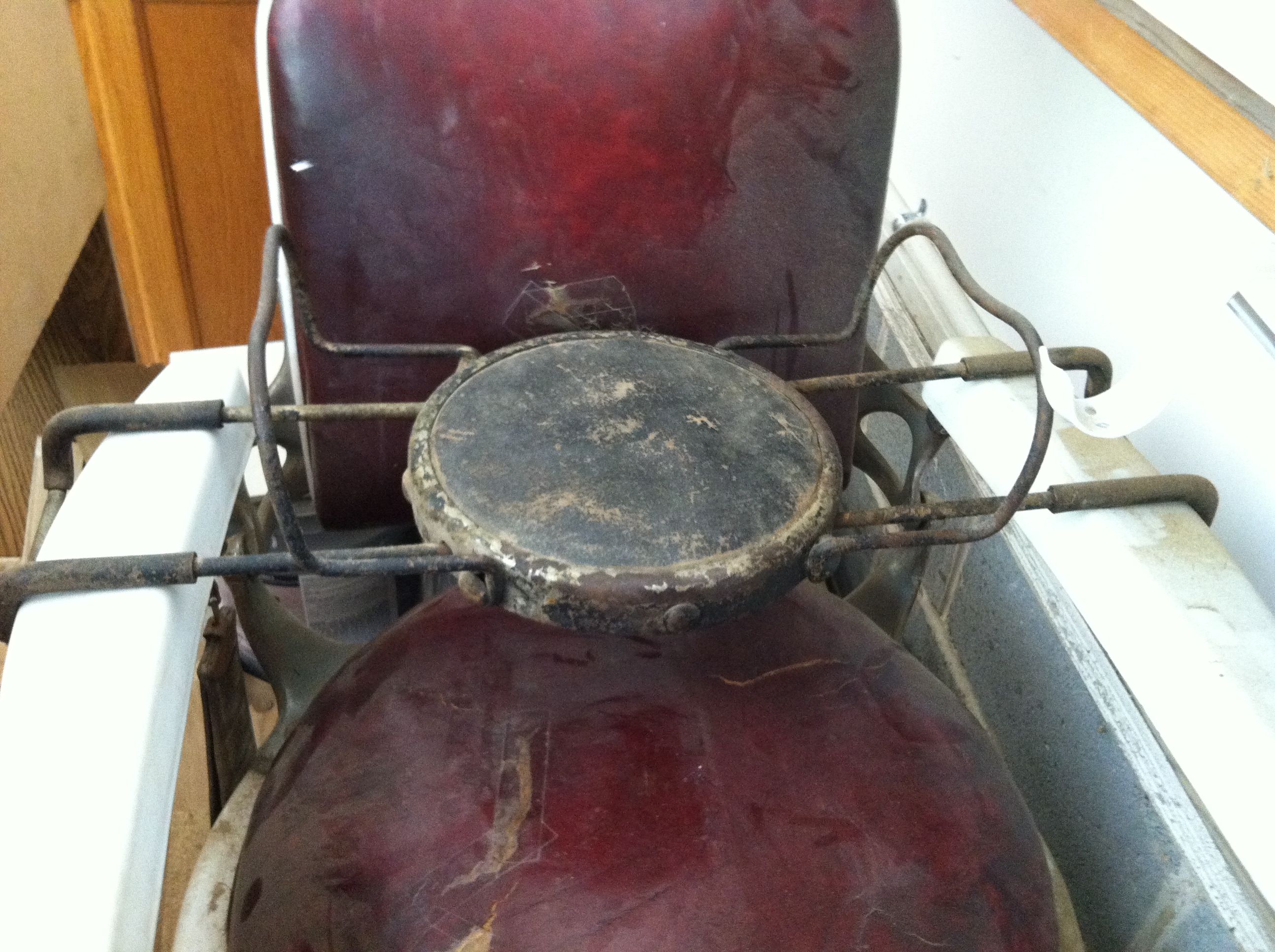 The hydraulics still work.. It has the seal skin strap for sharpening the straight edge razor. I have a childs seat, I don't think it is orginial to the chair. The leather is what you would expect. The chrome needs to be redone. The porcelain is in great shape.
