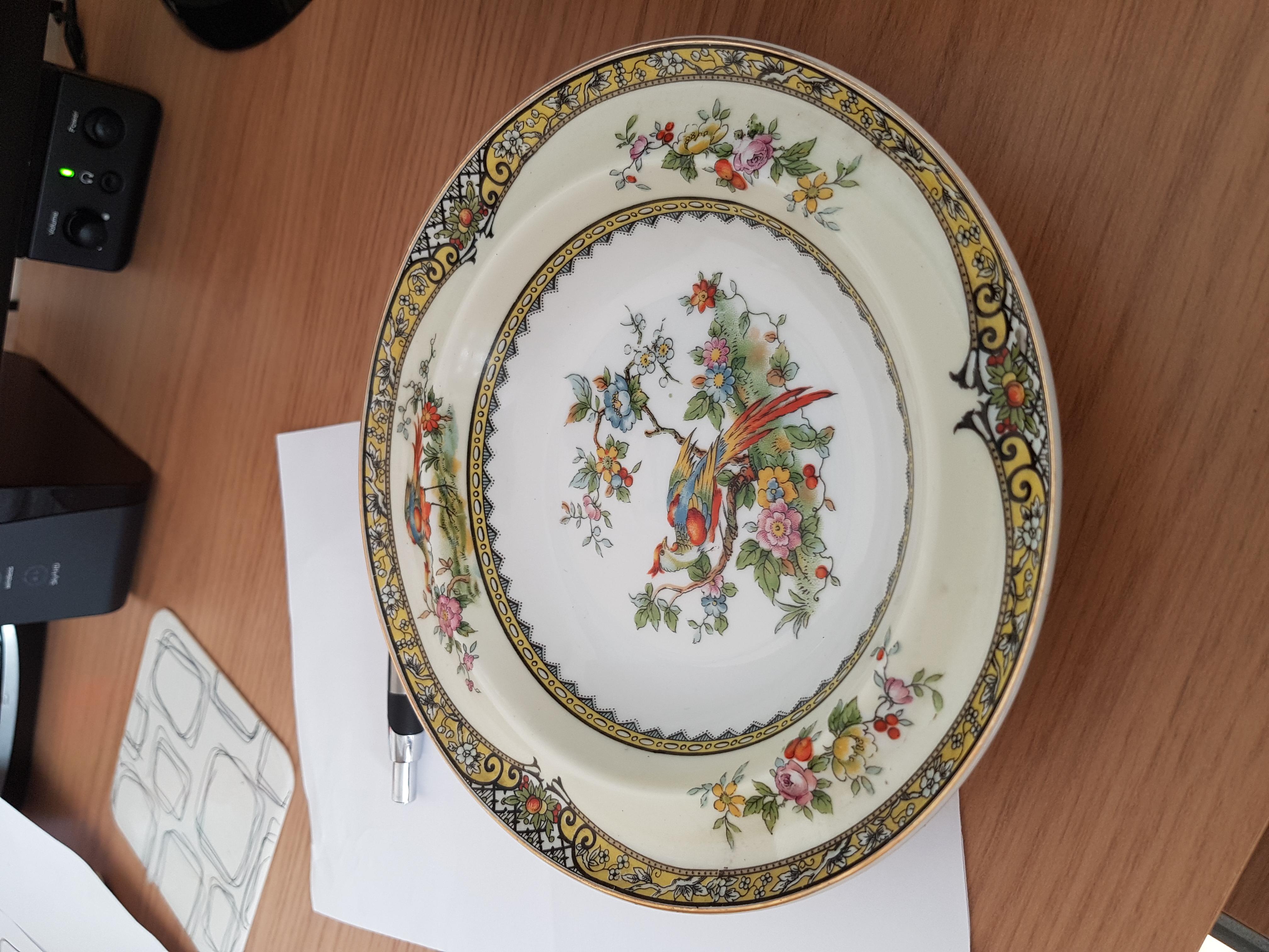 hello have this china 6 small bowls and 1 bigger bowl in good condition wondered if any one could give me more information and a valuation if possible please thanks