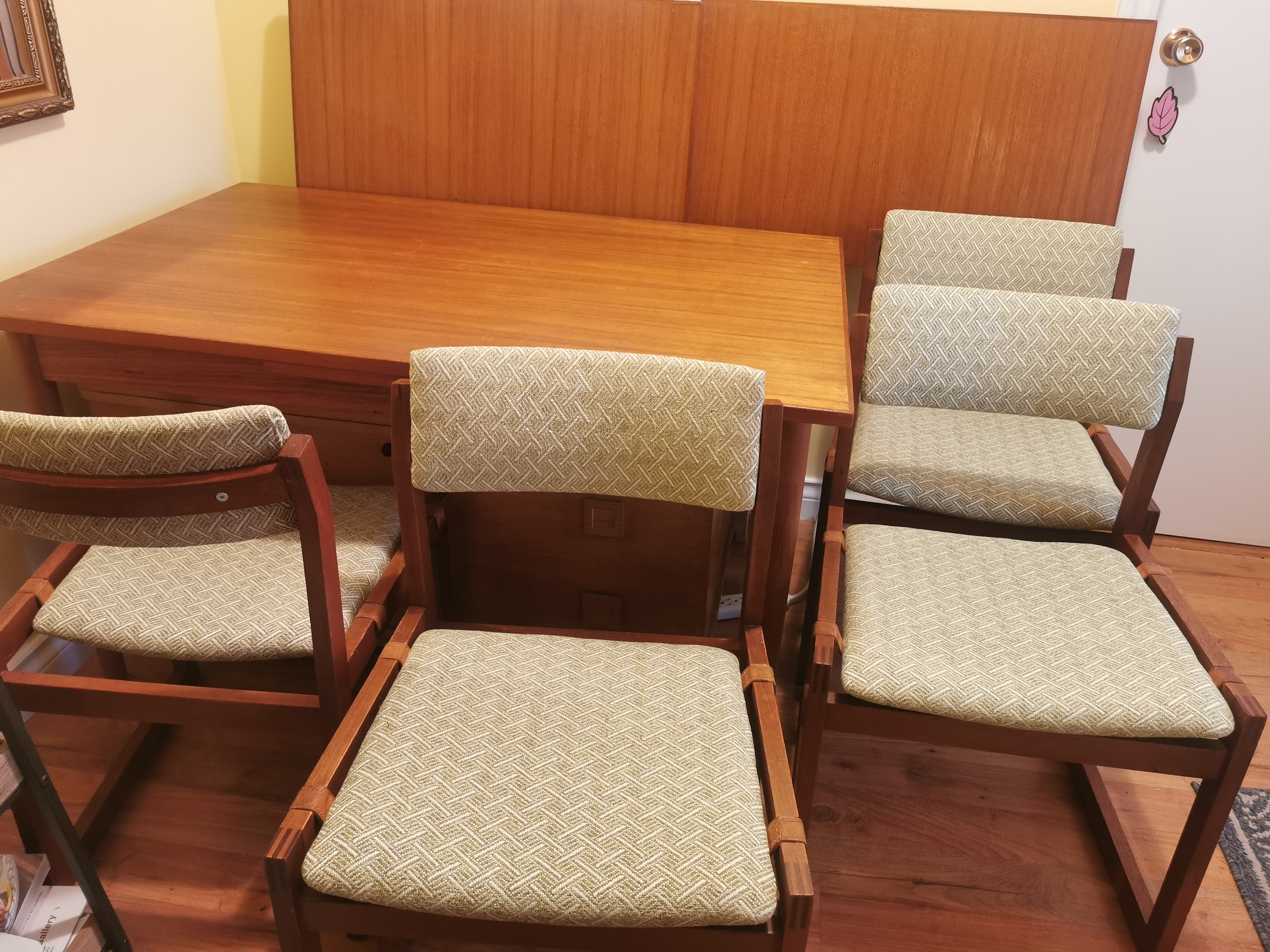 This set represents a well-crafted and potentially valuable example of Danish mid-century modern furniture, with a unique design feature that adds to its appeal.