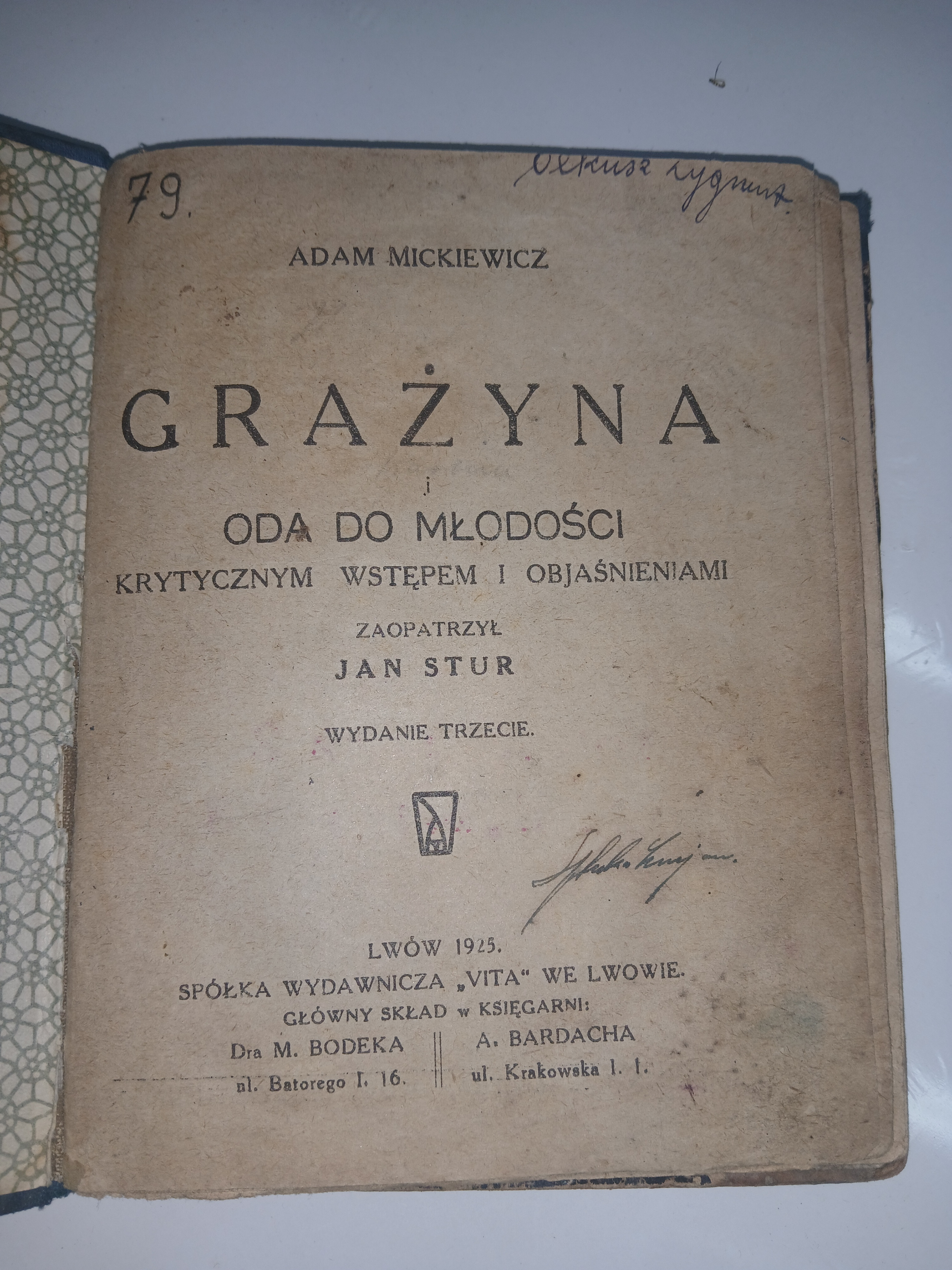 Grażyna by Adam Mickiewicz. Made by Spółka Wydawnicza "Vita". Unlock the full appraisal for complete details.