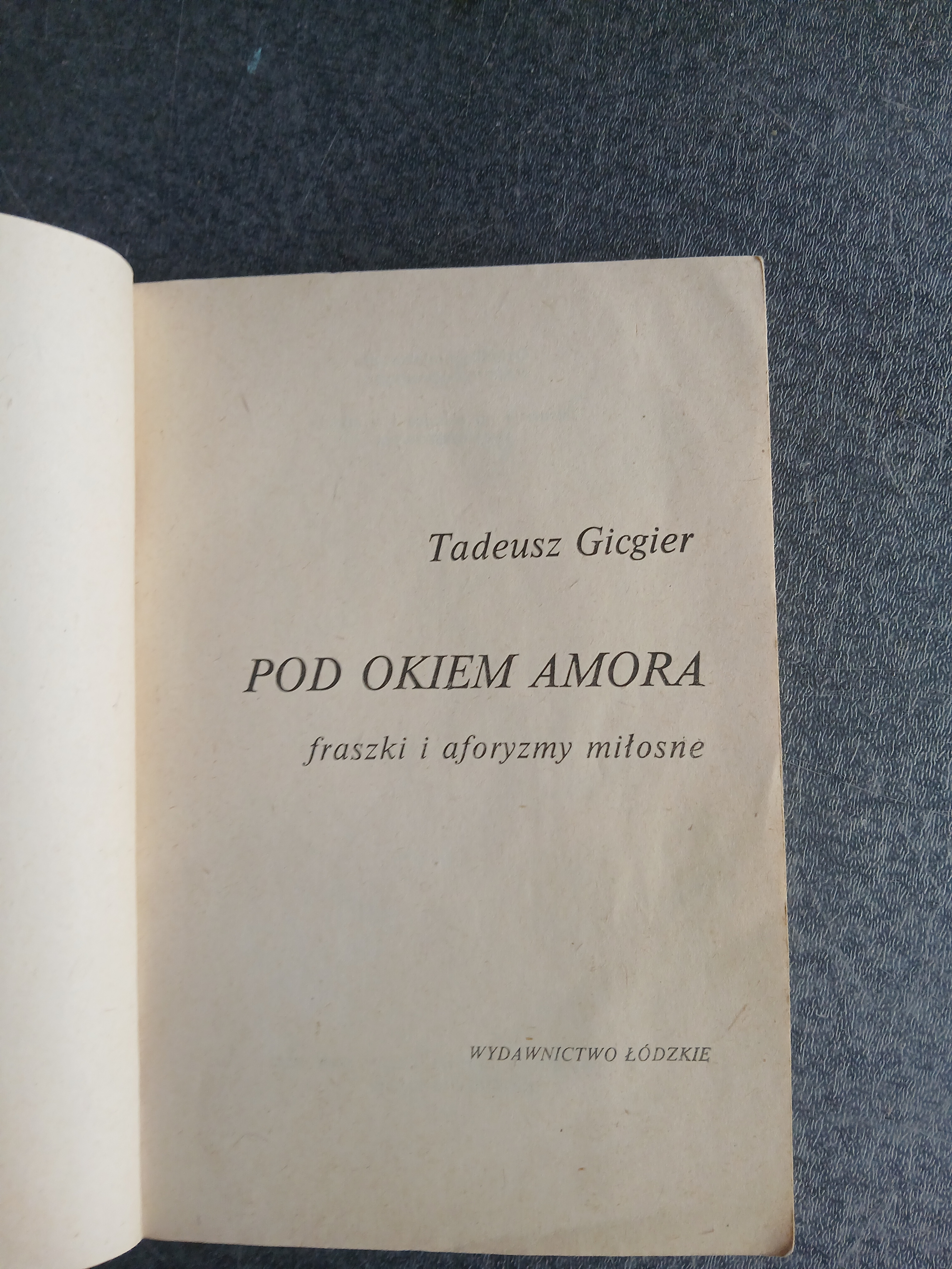 Pod Okiem Amora. Made by Tadeusz Gicgier. Dating to 1986. Materials: Paper. Estimated value: $15 – $30. Condition: Good. The market for literary works, especially those with unique themes or by notable authors, is generally stable.