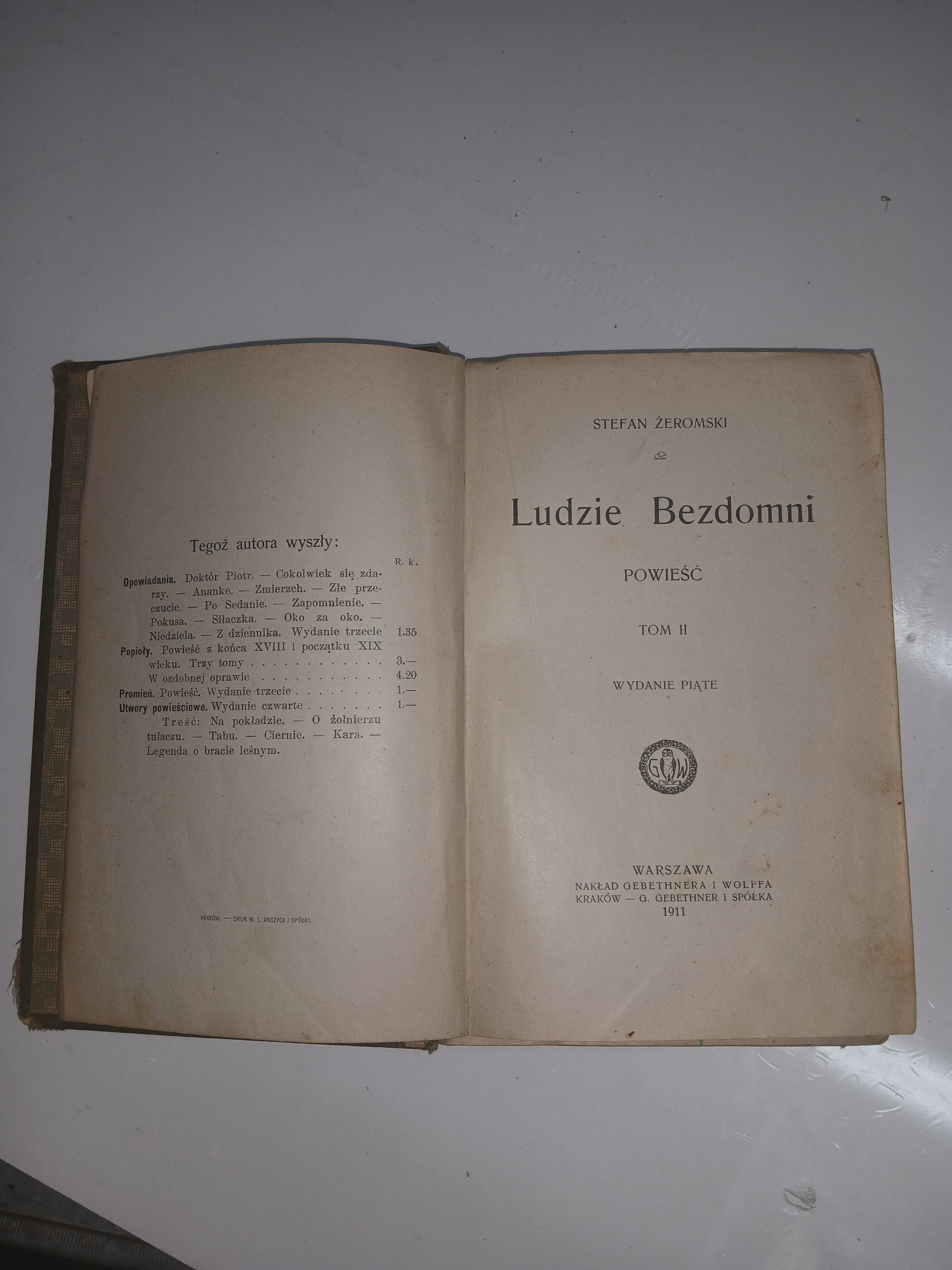 Ksiażka Stefan Żeromski Ludzie Bezdomni 1911r