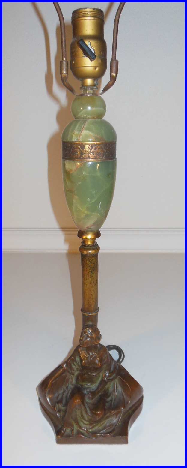 There are only signs of light surface wear but no breaks or gouges in the bronze or stone. It is in need of rewiring, of course, as evidenced by the photos.
