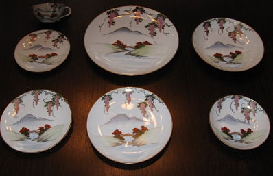 Beautiful 94 pieces total (inc. 3 covs.) Kutani Dinnerware set. 12 place settings of 7pieces each. Dinner, salad, B&B plates, Large and small bowls, cup and saucer. 7 serving pieces, Large and medium serving platter, Covered rice or serving bowl, vegetable bowl, teapot, sugar bowl w/ cov, and creamer. Never Used
