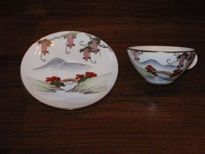 Genuine Kutani in red circle with 2 japanese characters and mountain symbol