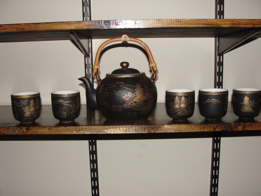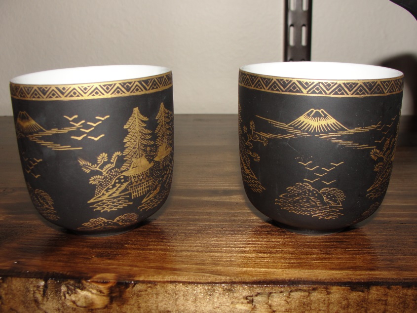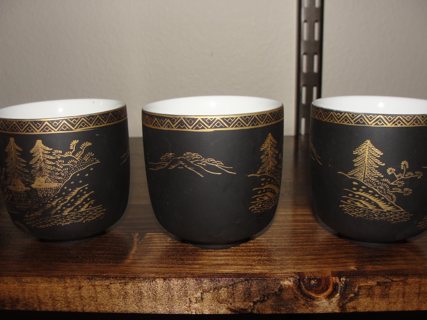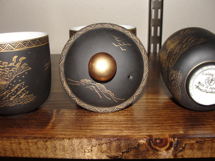 There are some small marks on the gold top handle of the pot lid, but are so small they could not be picked up by the camera (due to flash). No chips, no fading.