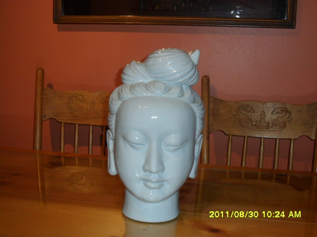 Head appears perfect, no visisble flaws. It has been displayed on shelf since purchased in Japan in the early 1950"s.
