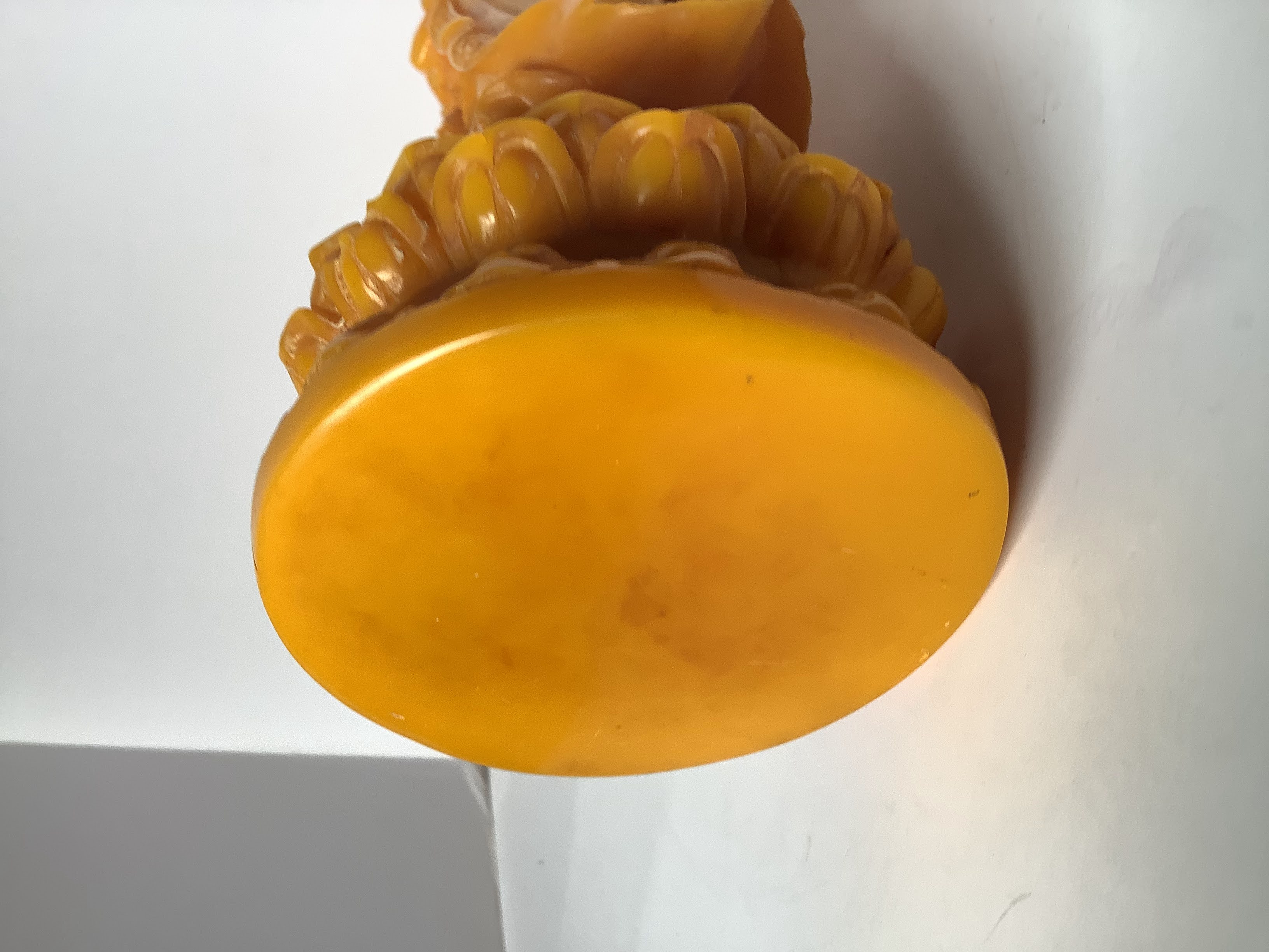 I got this at auction. Not sure of maker or value. Also wonder what it's made of Resin or some kind of stone?