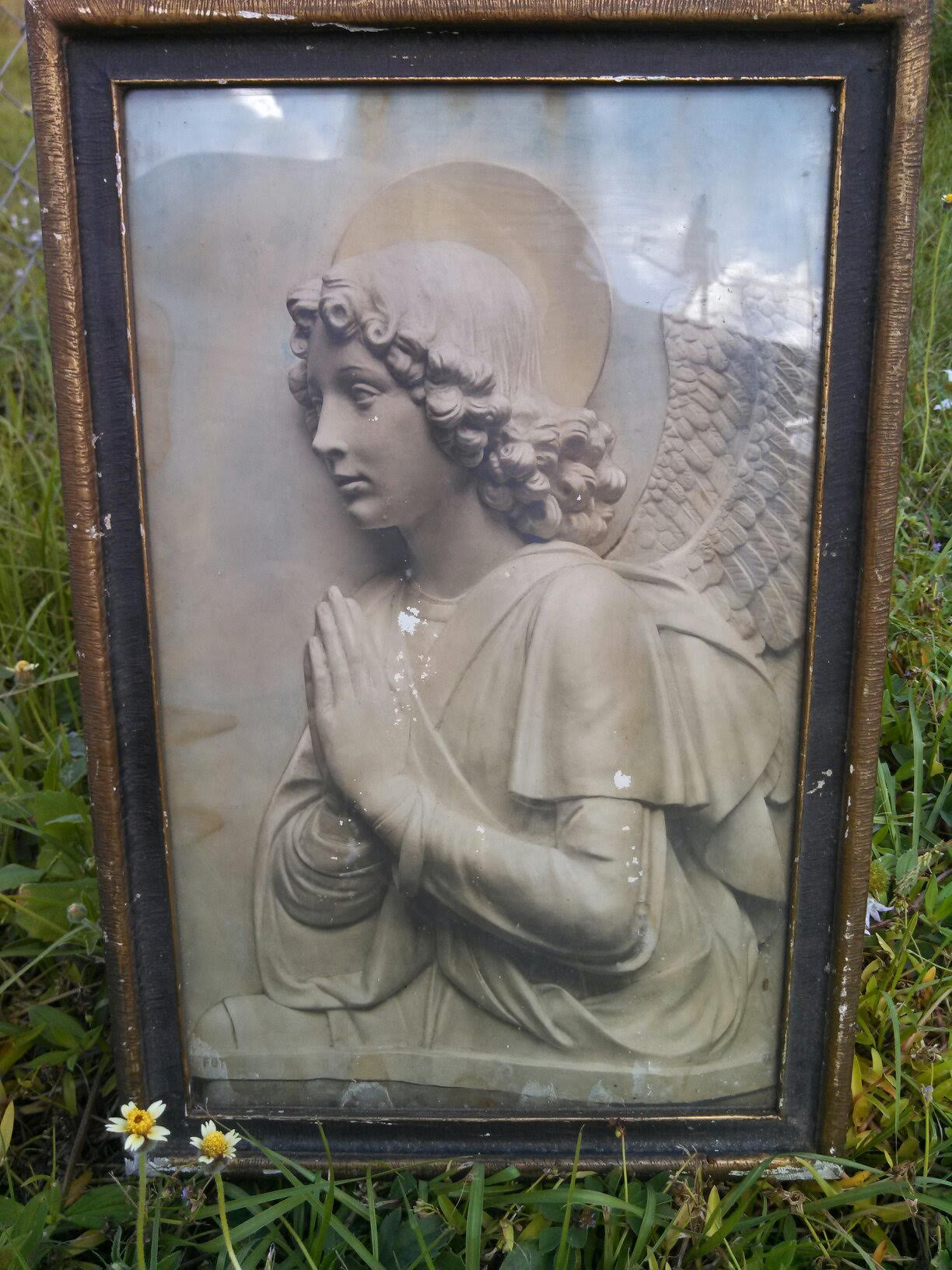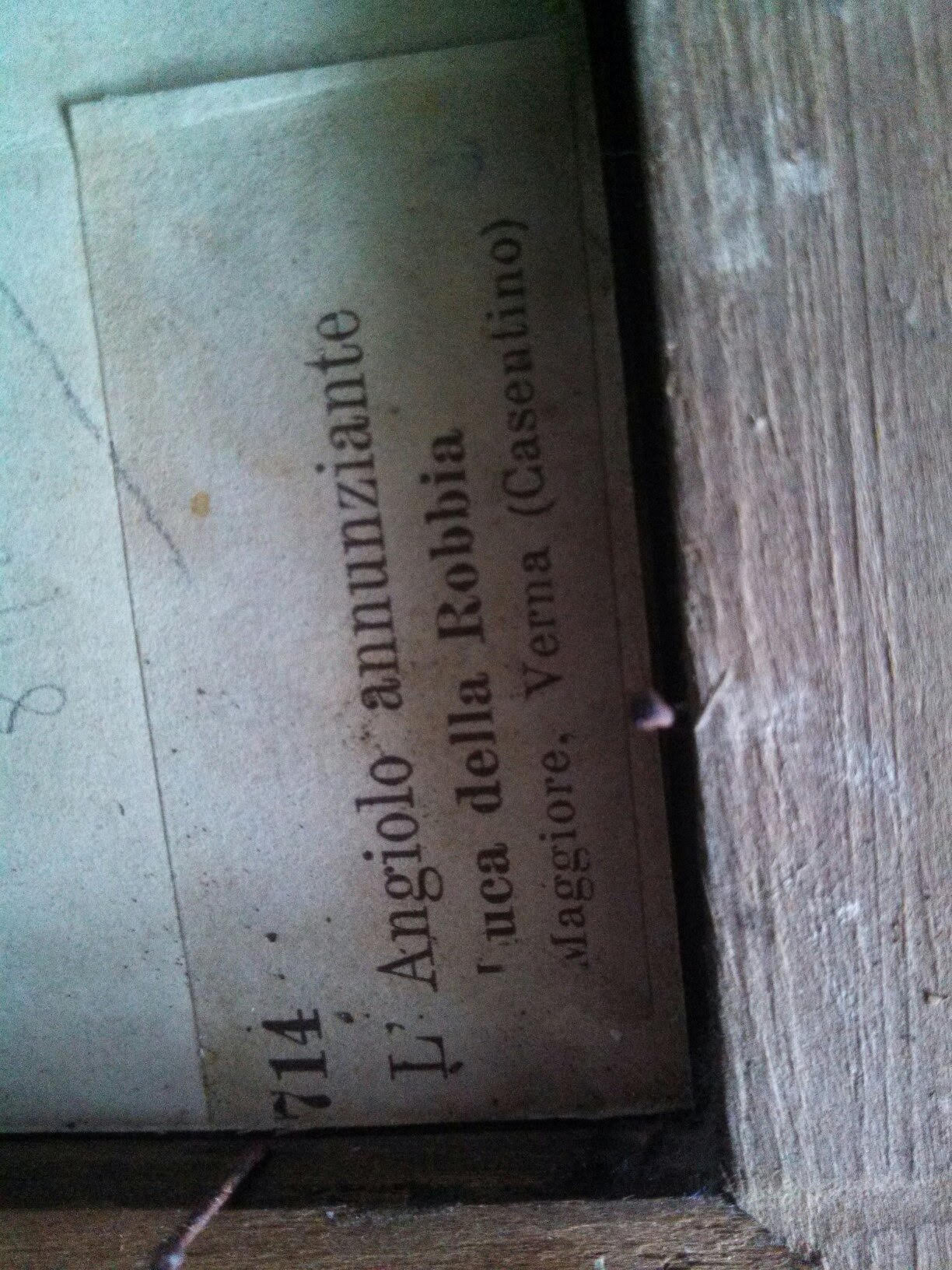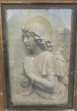Believed to be a relief print of Angel of Annunciation stamped Brogi. After carefully removing the back of the frame (old)  I uncovered an old label that reads: