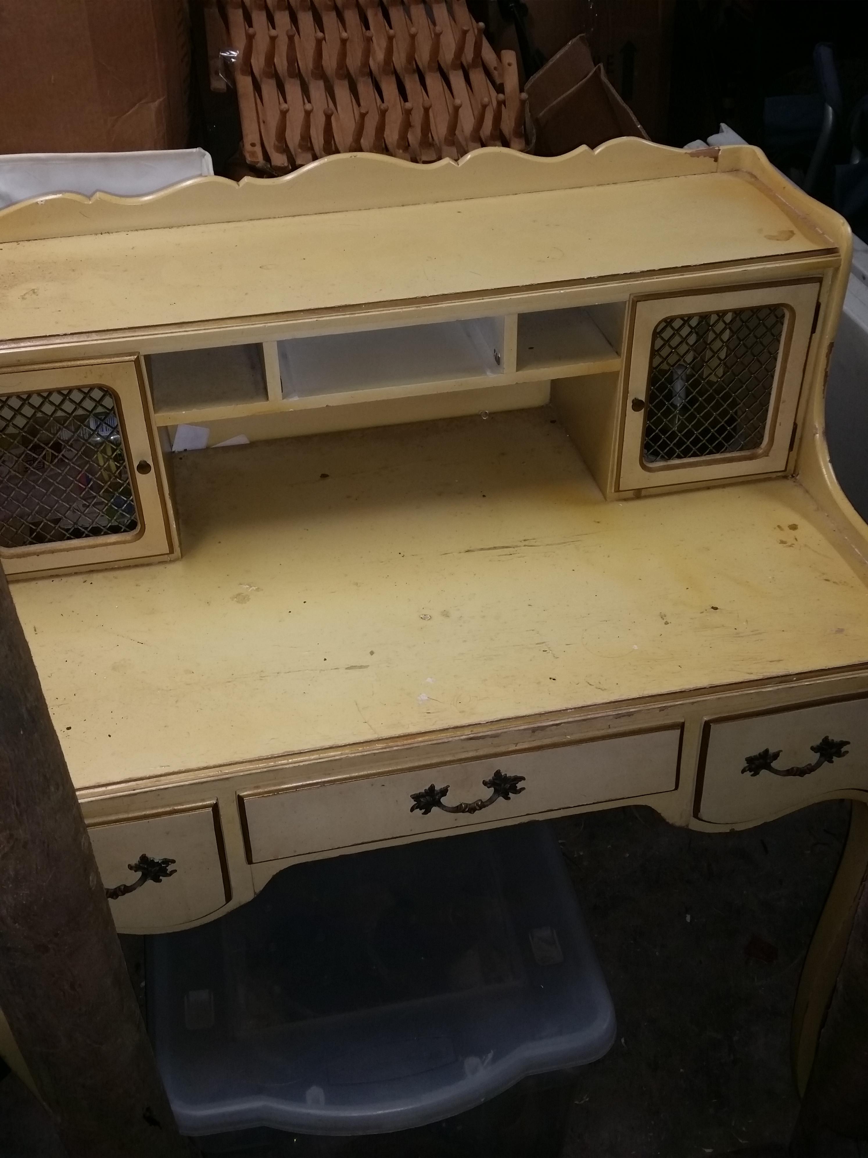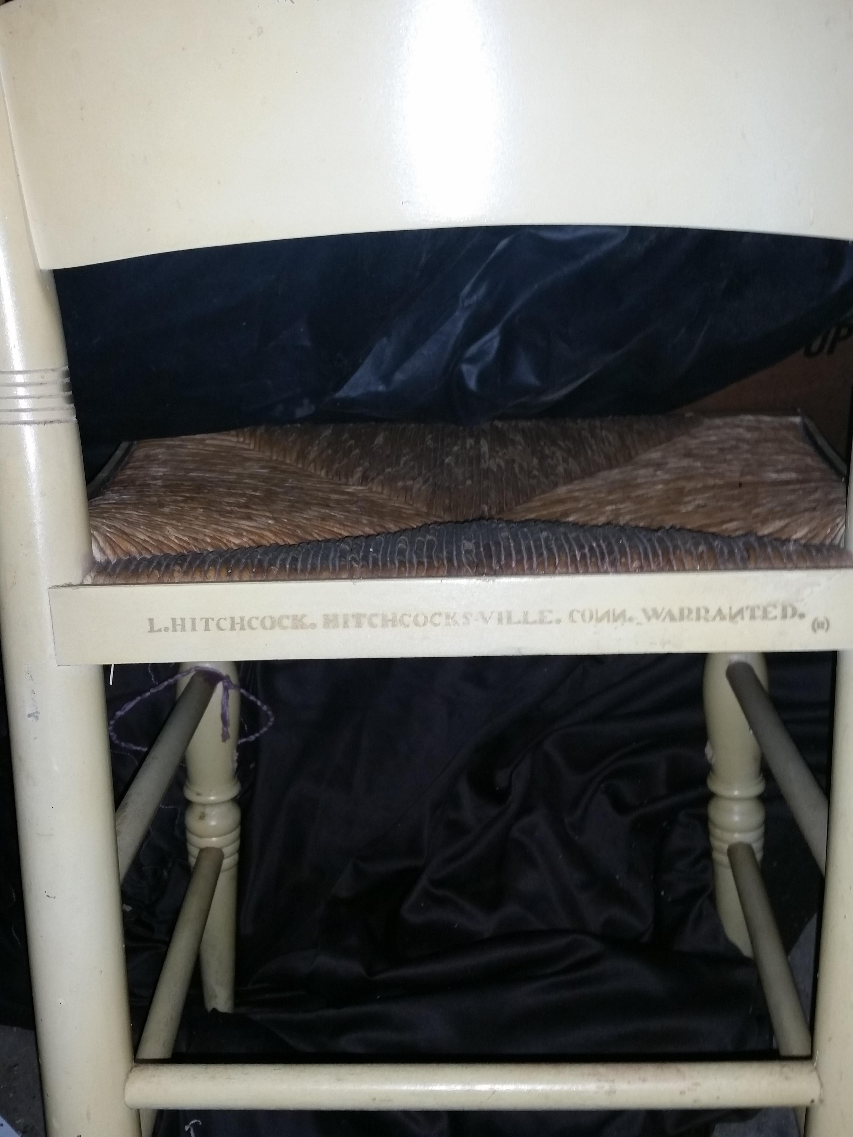 L. Hitchcock desk and chair. It was my wife's grandmother's and has been in the family since it was bought new, although I can't seem to get that info. The chair is in good shape but the desk is starting to chip paint and could use a good cleaning. I can find any markings on the desk like the one the chair has. Looking to know anything about the set and how much it is worth.