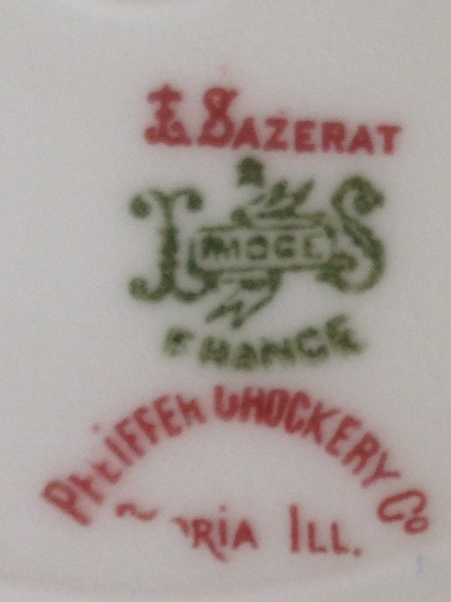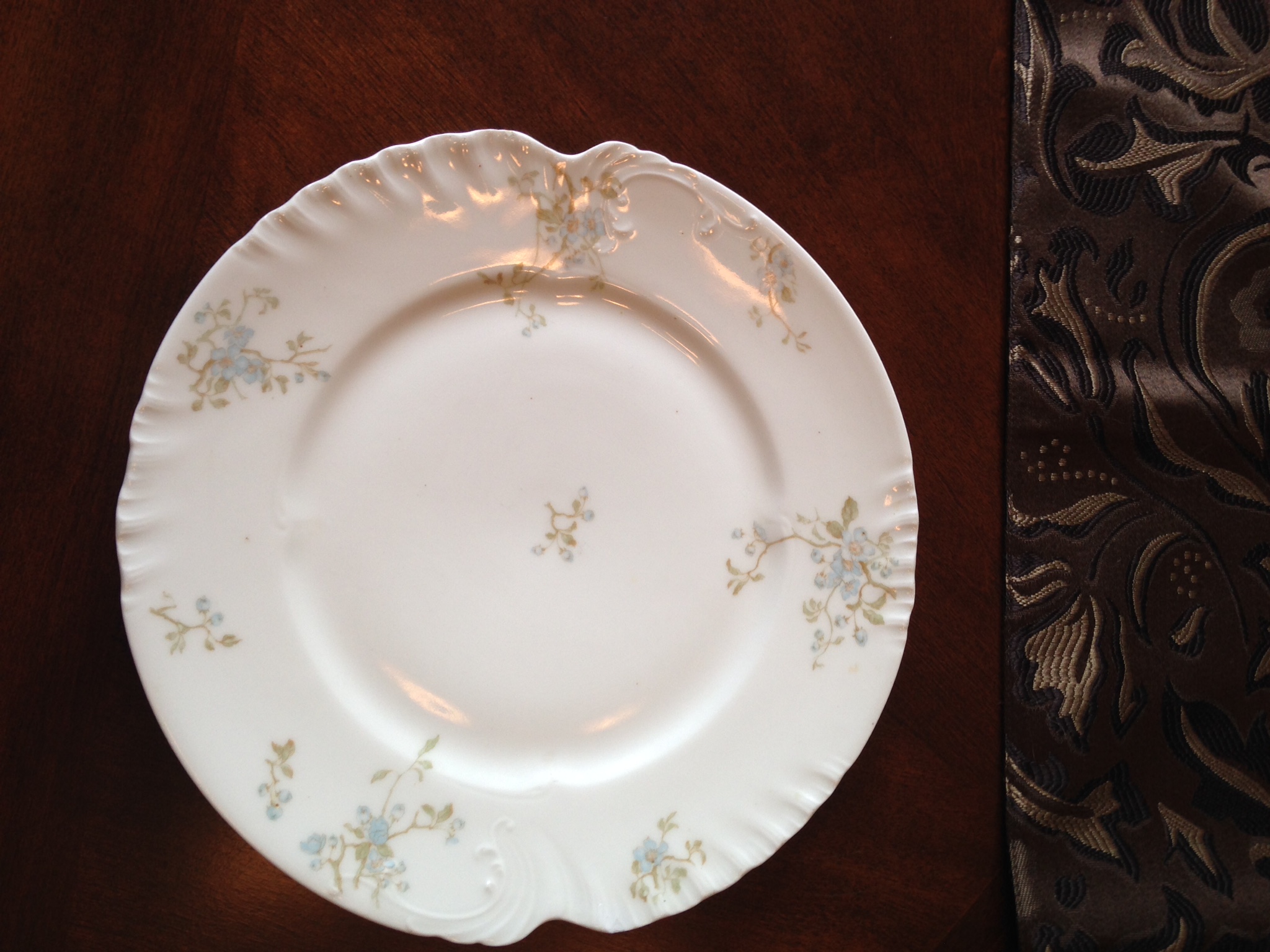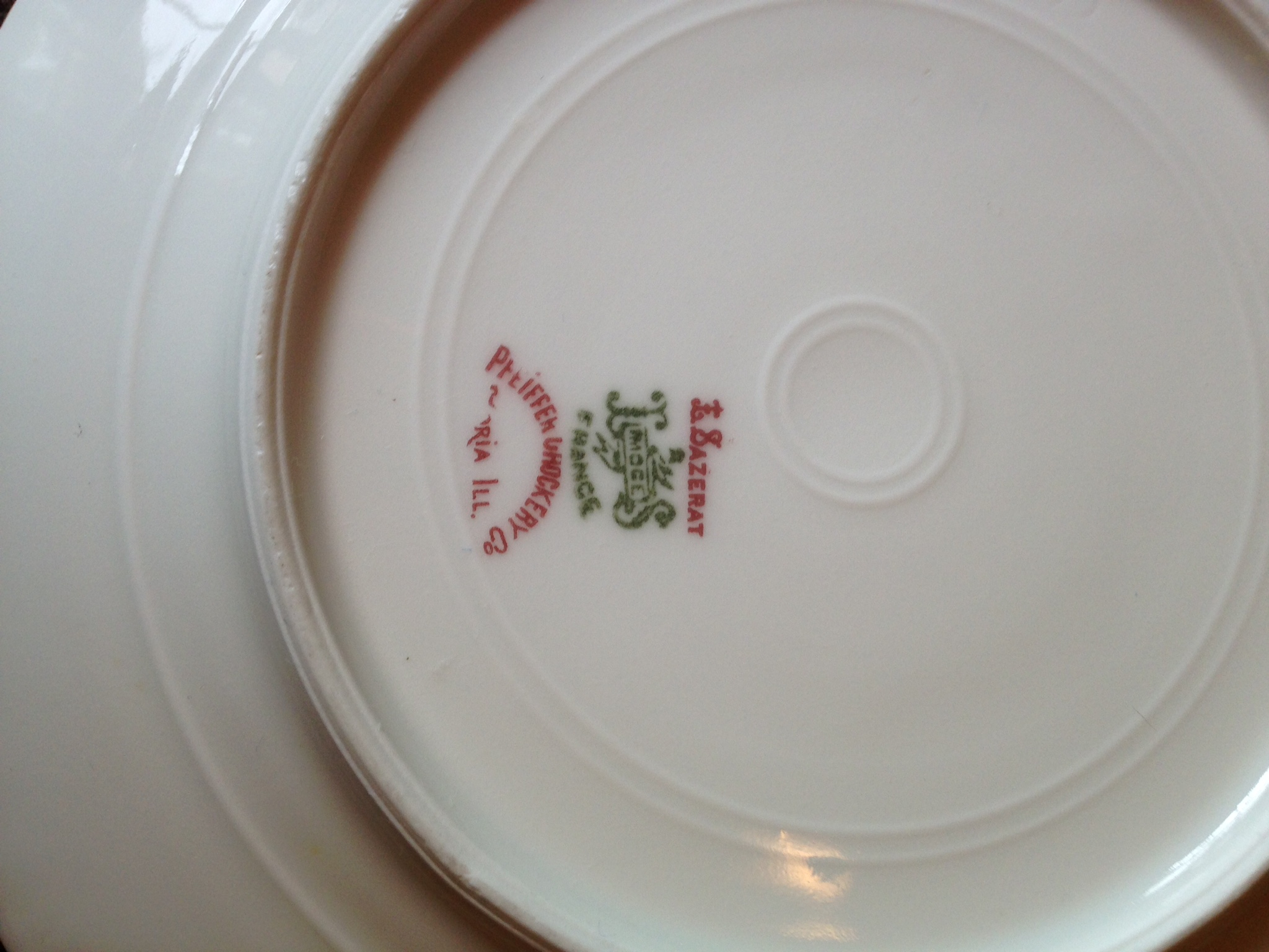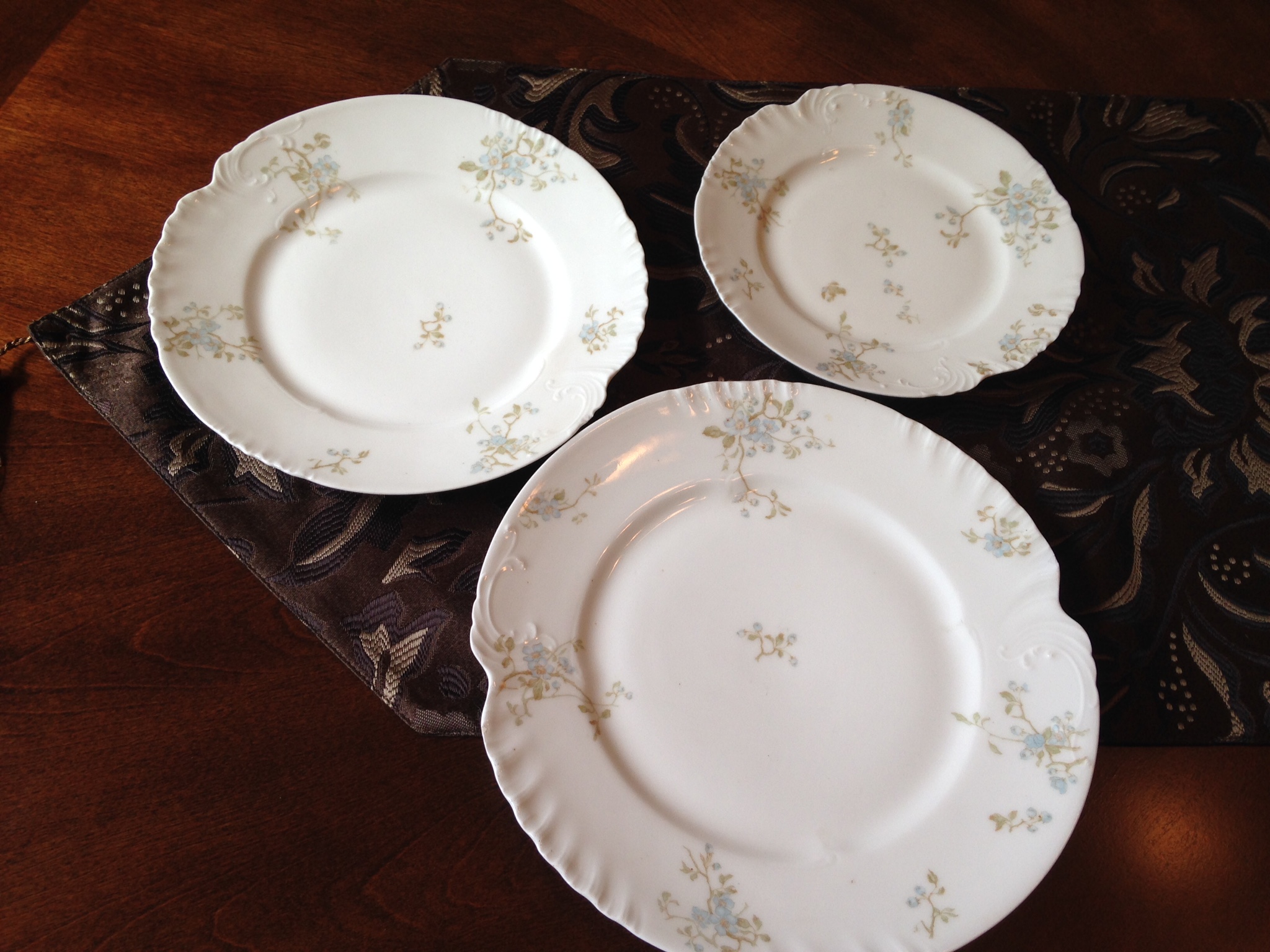 L. Sazerat French Limoge dinnerware service for 12. Each place setting incudes 3 plates. It is from the late 1800's. It is in excellent condition with the exception of 2 dinner plates that have a small chip. The pattern is a pale blue floral design on white. I inherited these from my family and would like to know what they are worth. Thanks