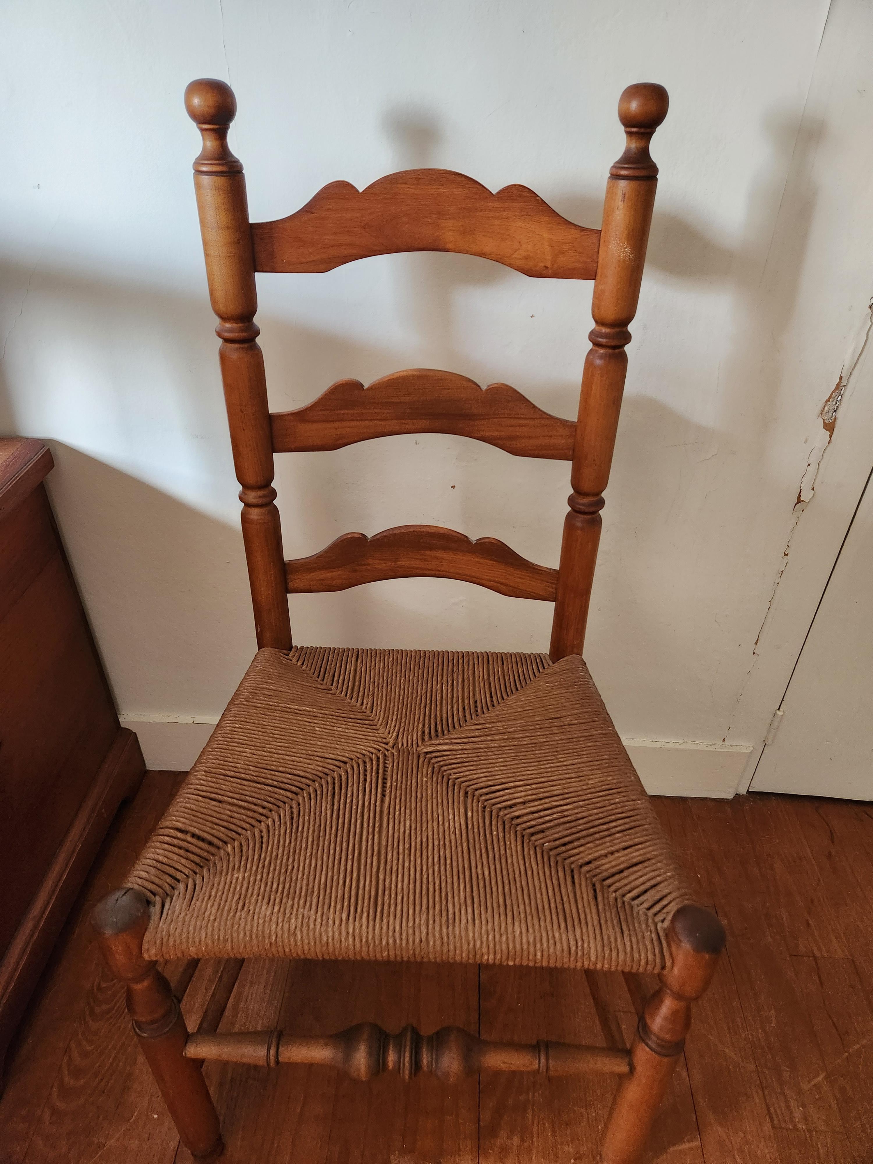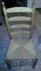 Second chair is a brown wooden ladder back with a cane seat and "fancy" wood details on the legs and chair rails and ladder back.