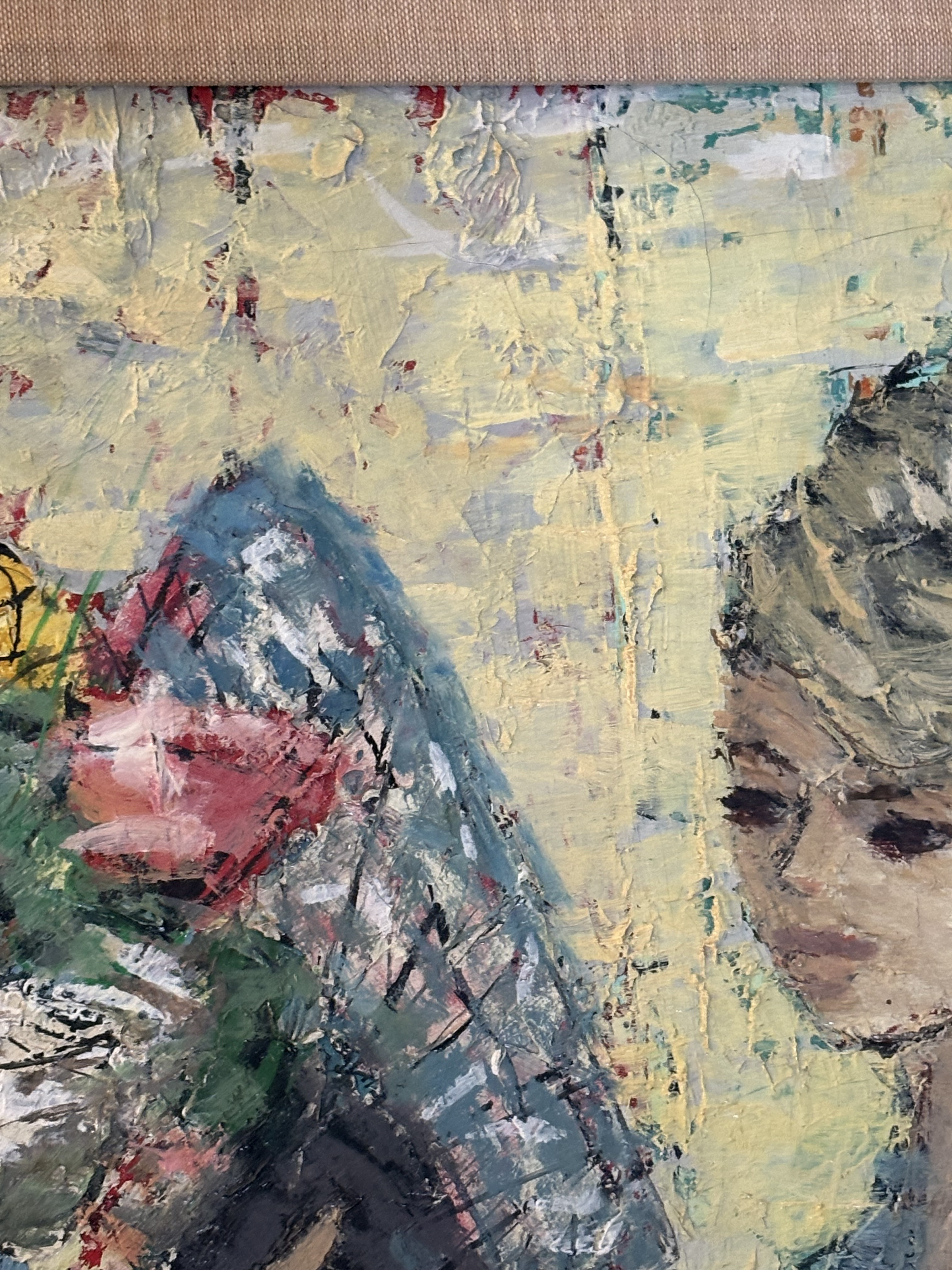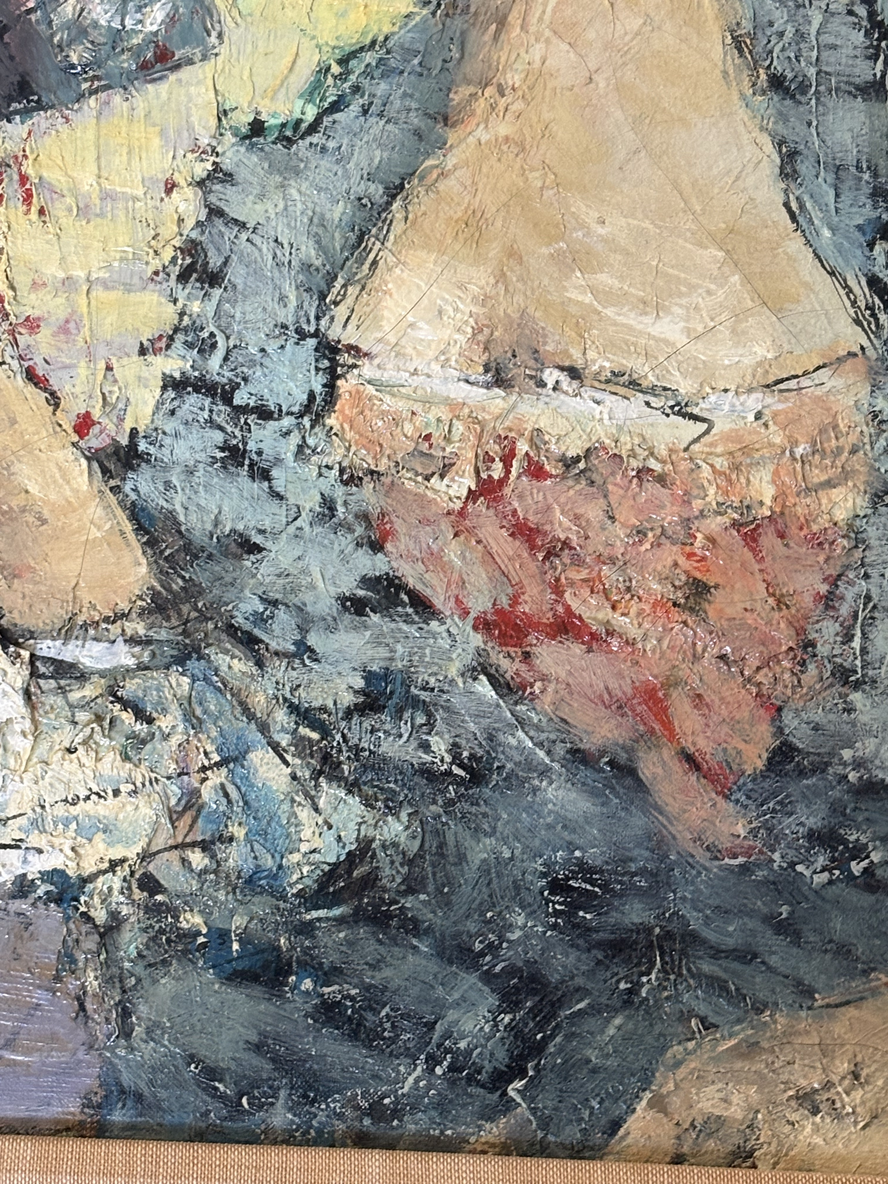 The painting is in fair condition, rated 2/5. There are visible signs of wear, including: