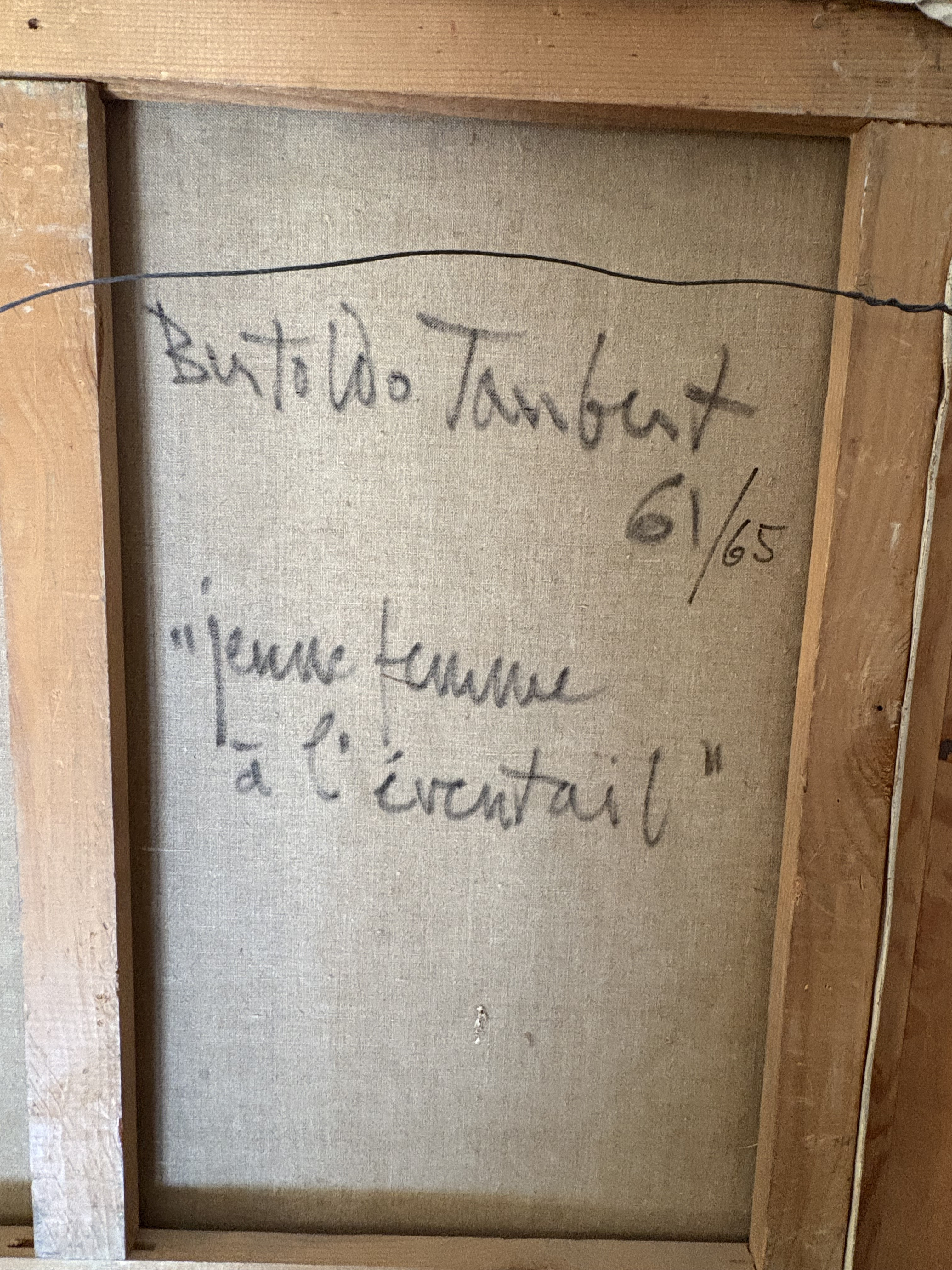 Bertoldo Taubert was an artist known for his expressive use of color and texture, often depicting women and floral arrangements. His works are characterized by a blend of impressionism and modernism, reflecting the artistic trends of the mid-20th century. This painting, titled "Jeune Femme à l'Éventail" (Young Woman with a Fan), is a notable example of his style.