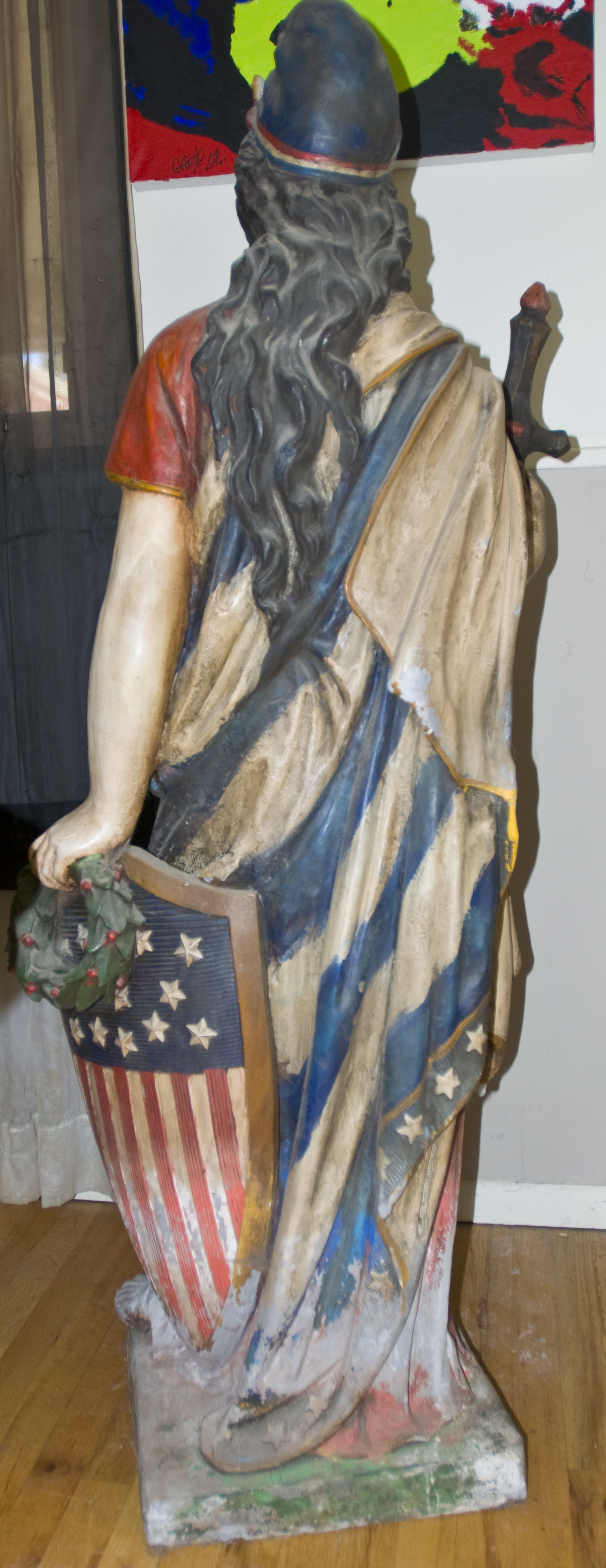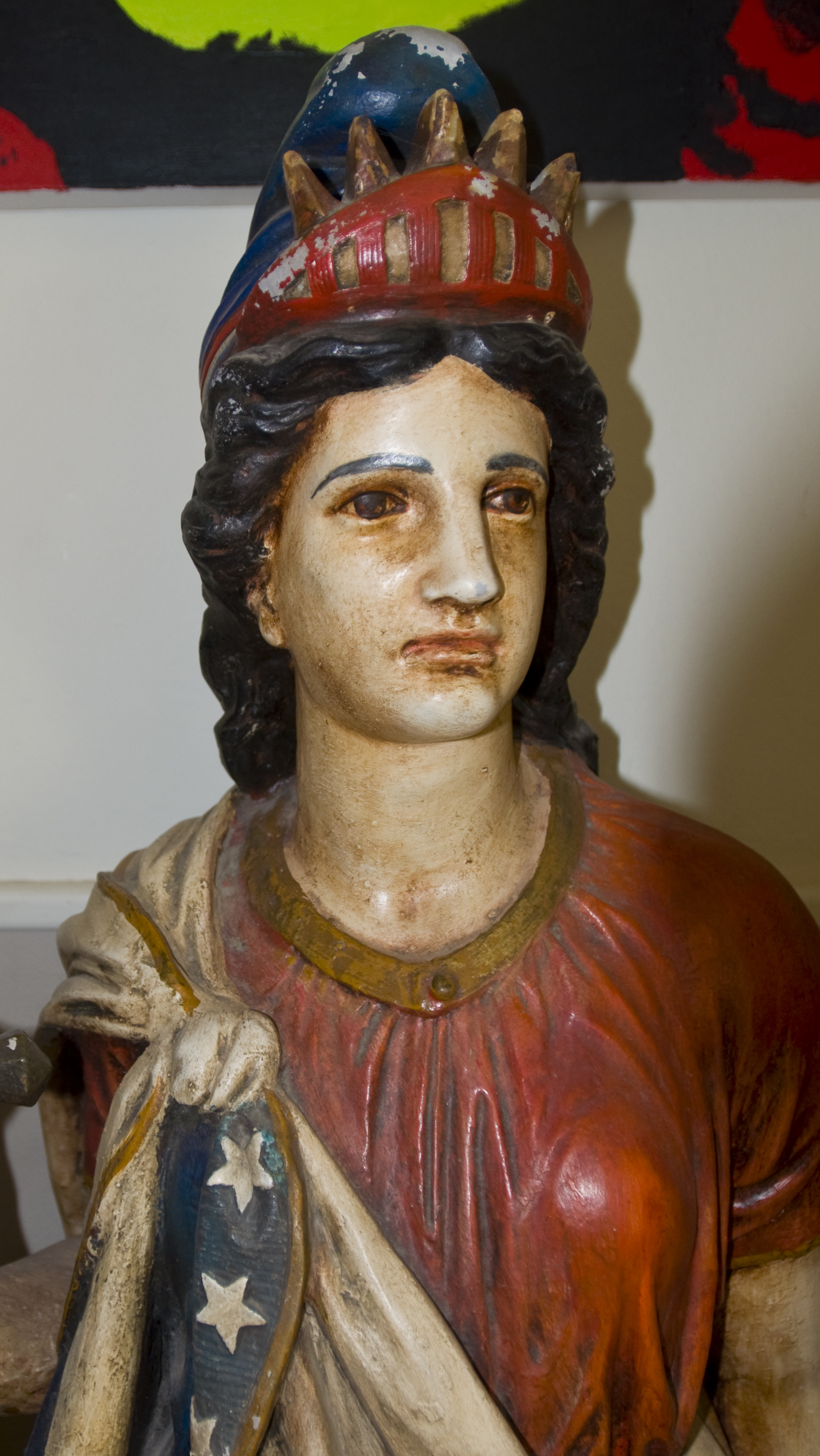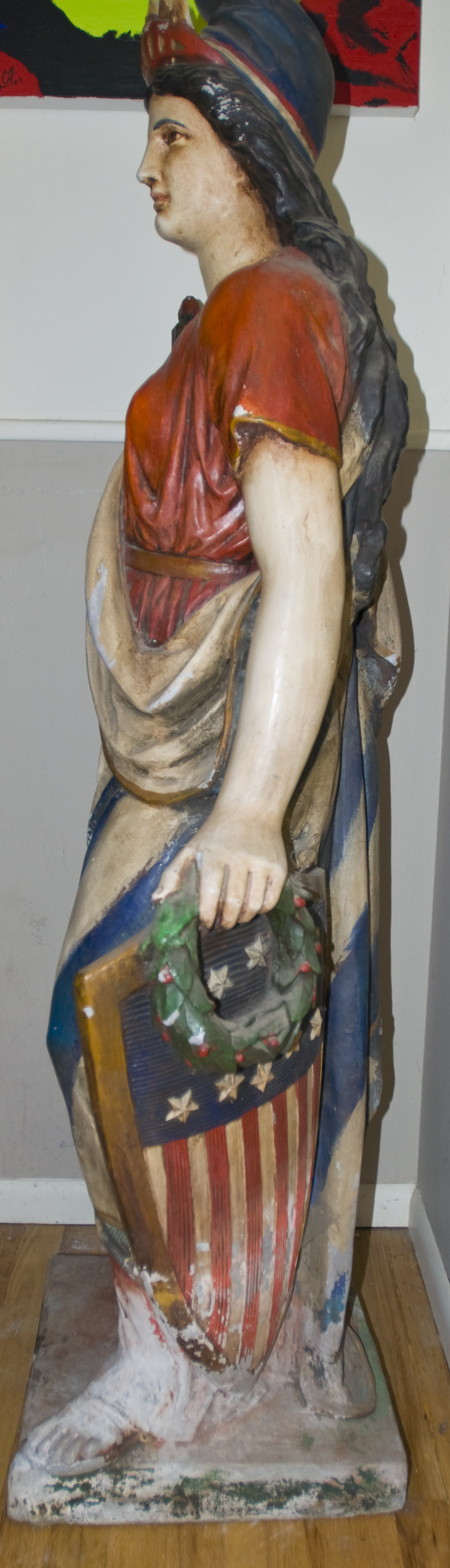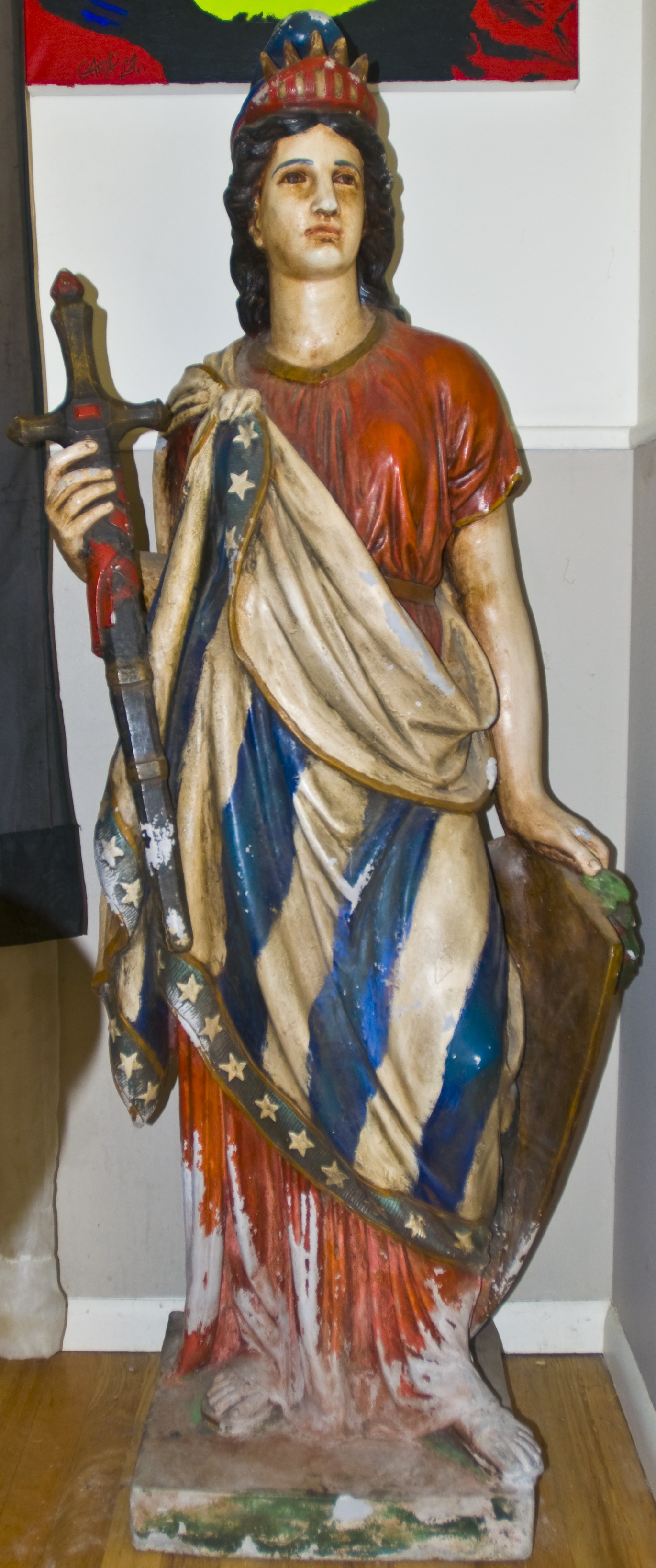 Some paint chipped off and plaster missing.